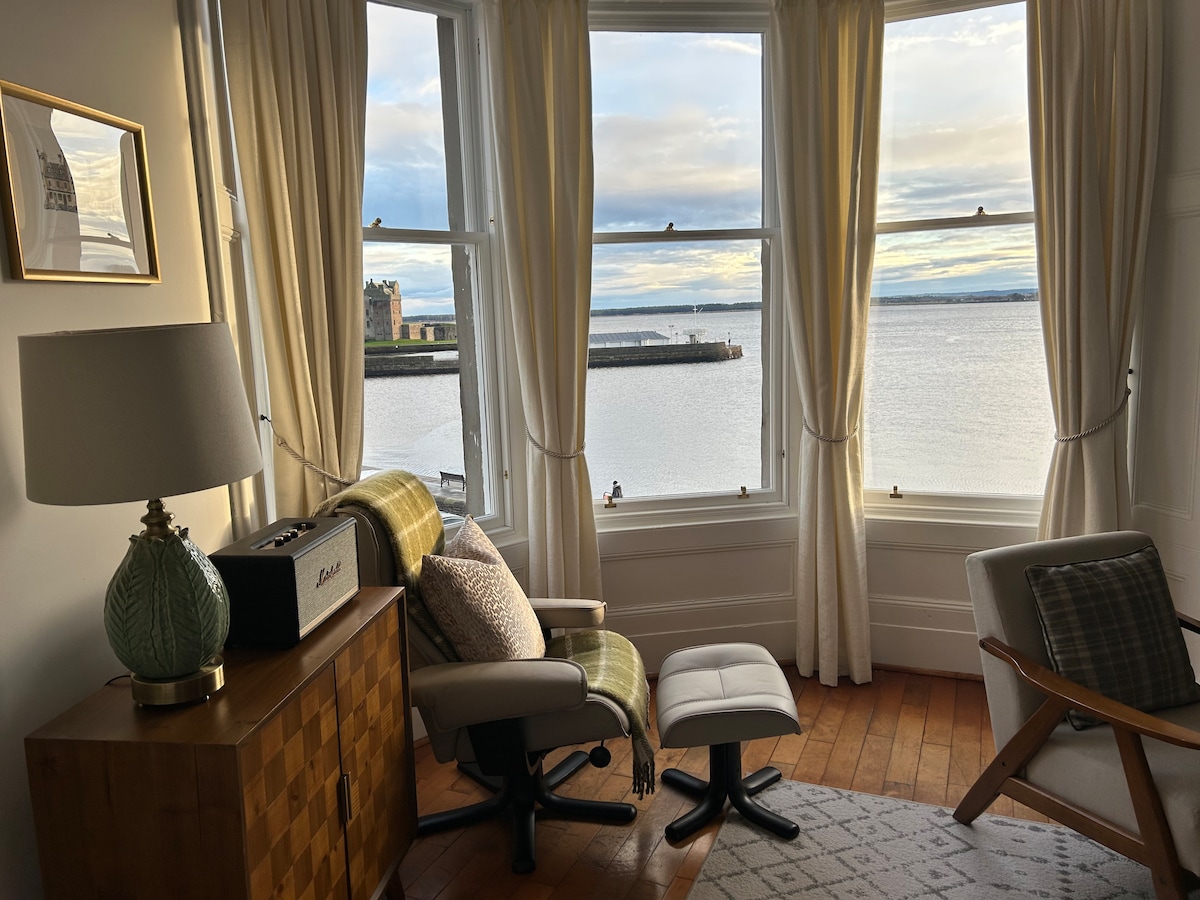 Welcome to Sealladh Caisteil, a fantastic top floor apartment in Broughty Ferry, Dundee. This spacious 2-bedroom flat offers a prime location, with breathtaking views of Broughty Castle and the River Tay. Nestled in the heart of the historic fishing village, its perfect for everyone from ex-pat Dundonian's visiting with family, to golfers ready to take on the links at nearby Carnoustie and St Andrews. Embrace the charm of Sealladh Caisteil. Insta: @sealladh.caisteil