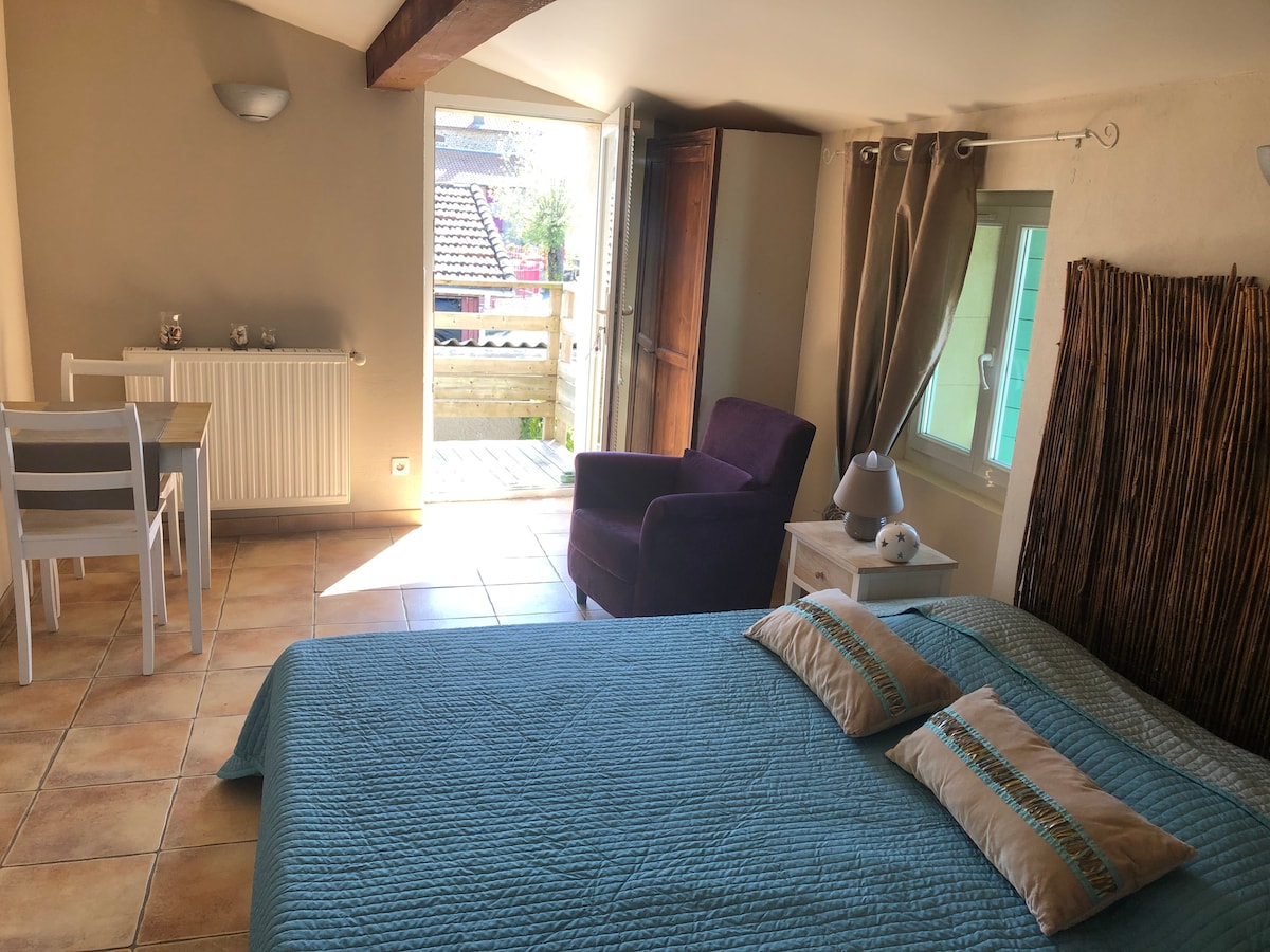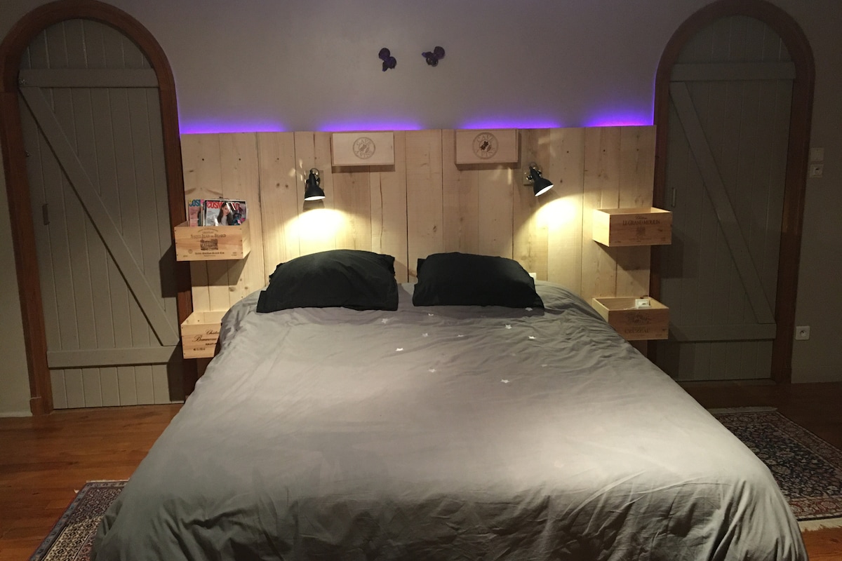 Are you a fan of originality and well-being? The "Spacious Suite" in green Ardèche - vernosc lès annonay cradle of hot air ballooning. In peace and comfort, this suite will allow you to have a pleasant stay. Located near regional cities such as Lyon, Saint-Etienne or Valence, The Spacious Suite will allow you to enjoy a unique romantic moment in the heart of the Ardèche countryside. All this in total independence, autonomy and discretion.