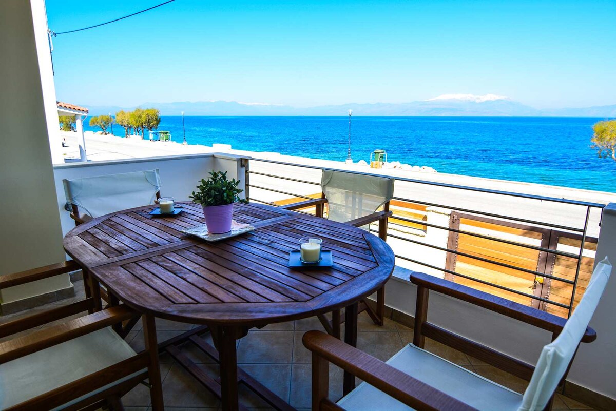 A beautiful spacious beachfront house situated just on the beach of the Corinthian Gulf in the Peloponnese, ideal for both families and couples wishing for a villa by the sea close to the most important archaeological attractions of the Peloponnese and near to the capital of Athens as well !Wireless Wi-fi all year long , brand new air-conditioning in every bedroom and closed garage among the many facilities this beachfront house is offering to guests