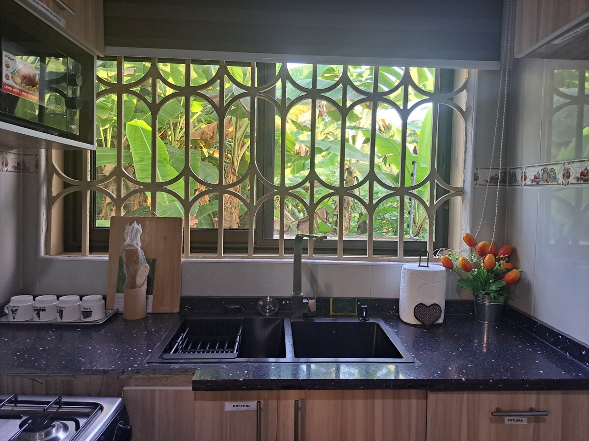 Beautiful, serene apartment unit at Pedu, Cape Coast. Accessible road to the apartment and located in close proximity to major tourist sites in Cape Coast. It is a 2-minute drive to Abura, a 30-minute drive to Kakum National Park, and a 15-minute drive to Cape Coast Castle, Palace, and Beaches. Maximum guests per stay: 2