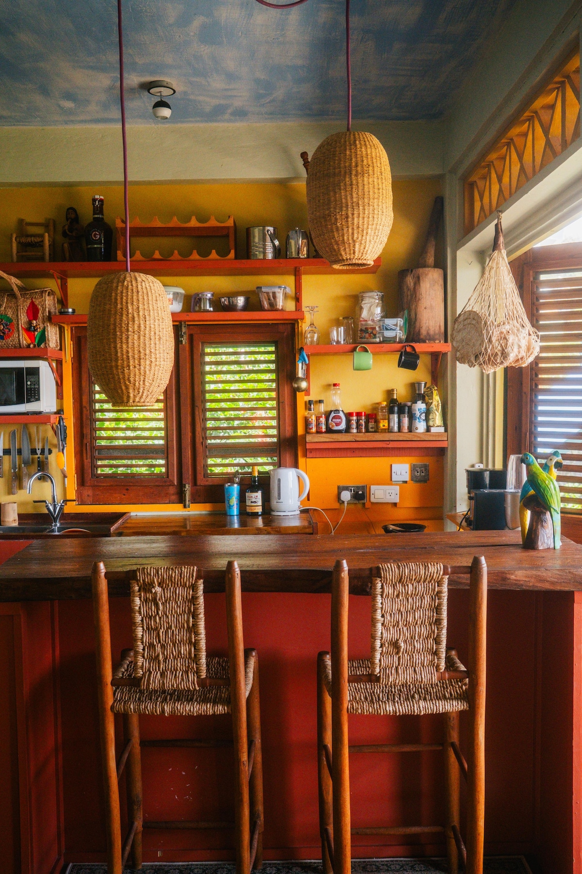 Make Story Villa: 1 BR with Ocean & Mountain View , a 1-level/1-BR private residence, your perfect nest away from home. Situated at the top of the hill of Canaries Village, Story Villa offers you a panoramic ocean/mountain view. Blending modern designs and folkloric styles, this exquisite retreat is the ideal stay for solo travelers, couples and groups of up to 4 ppl. Enjoy its sparkling cleanliness, vivid colors and the comfort that it offers. Book now, you don’t want to miss this one!