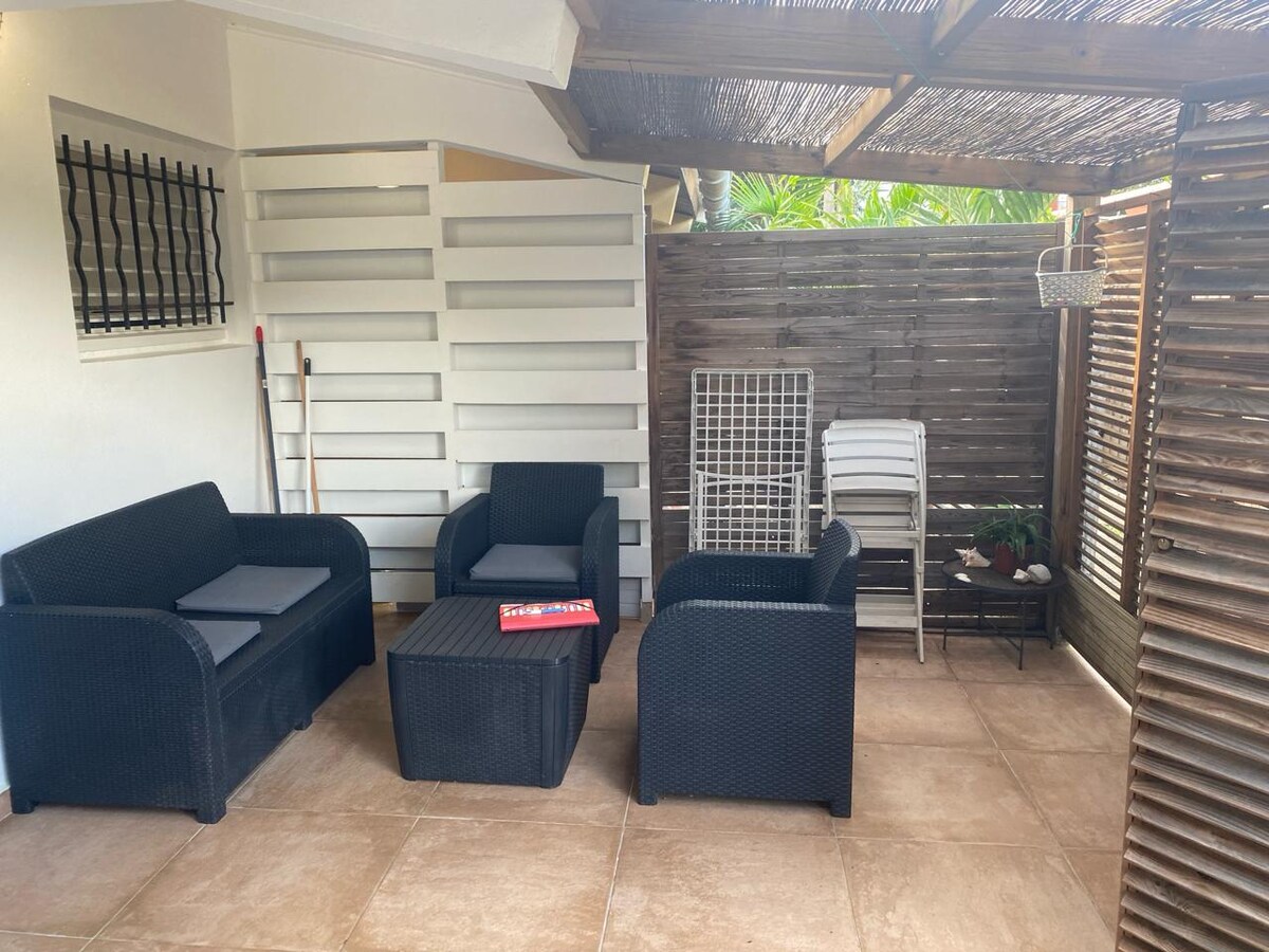 Forget your worries in this spacious and serene space. Located close to the beach, in a residential subdivision, 50 m2 2-room with 15 m2 pergola for a quiet stay. The apartment is a lower villa (1980s) with hot water. You will be located a 3-minute walk from Anse l'Étang beach, ideal for learning to surf! Located a few minutes' drive from an internationally renowned surf spot You will find a doctor and grocery store 5 minutes by car.