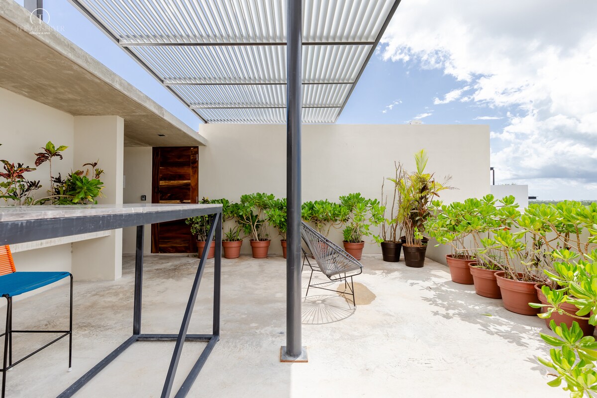 Experience comfort and tranquility in our spacious and cozy ALUNA SUITE. Enjoy a fully equipped kitchen, king-size bed, smart TV, 500 Mbps WiFi, and a terrace with a private Jacuzzi overlooking nature. Relax in this serene environment, inside the CASA JUNGLA complex, located in a private subdivision on Calle 38, just 2 blocks from 5th Avenue, the beach, restaurants and supermarkets.