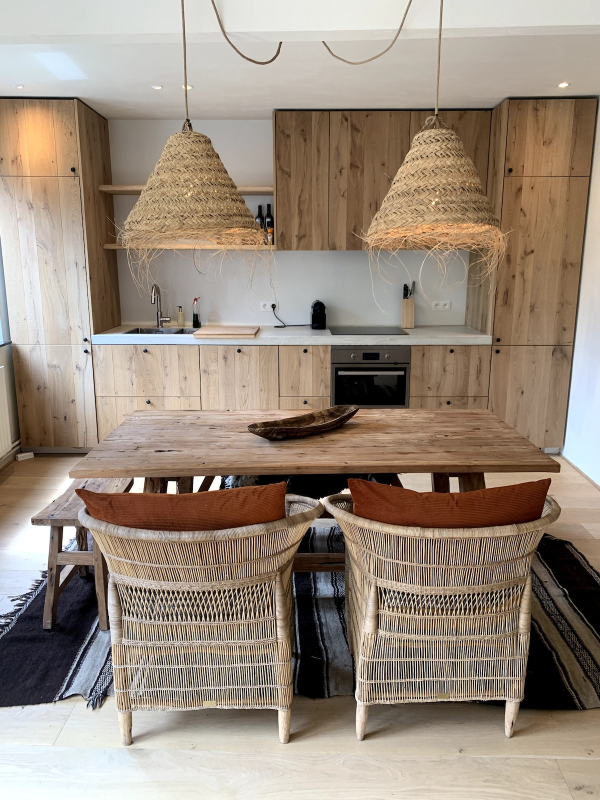 Right in the historic center of Antwerp, in between Mechelsplein with many bars, the main shopping street Meir, and the hipster area The South, you will find this little gem. It’s the perfect neighborhood for your stroll through the city, everything worth seeing and doing just a walk away. You will be charmed from the moment you enter the small building. The beautiful stairways will lead you to the second floor, where you will find our tastefully furnished, boho styled apartment.