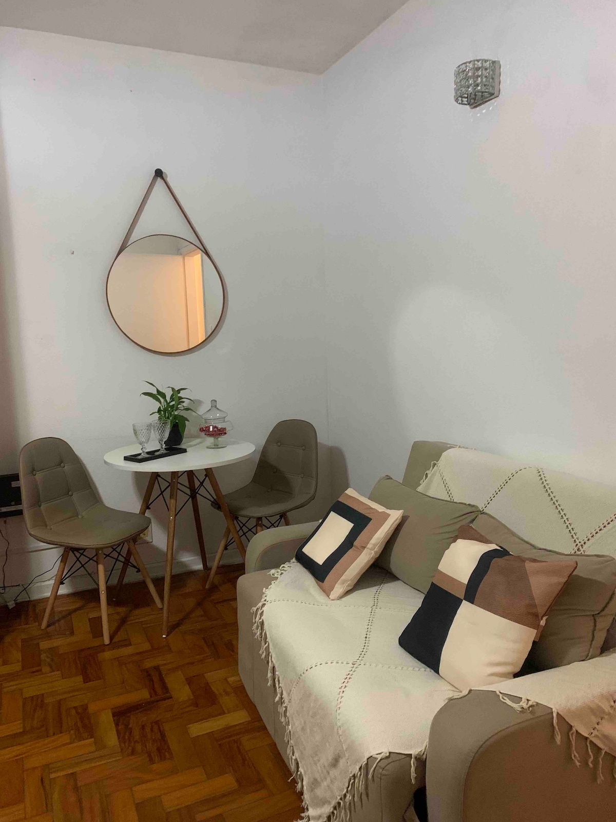Studio apartment in Embaré in Santos, building on the waterfront, side sea view. Studio has just been completely renovated, everything is brand new, minibar, stove, microwave, double sofa bed, queen size bed, TV, It sleeps 4, being perfect for a couple. The building is in front of Embaré beach, the best location in Santos, next to Pão de Açúcar, shops, bakeries, Sto. Antonio church, the tip of the beach, kiosks and trendy bars. You don't need a car for anything. Beautiful place. Wi-Fi AIR-CONDITIONING
