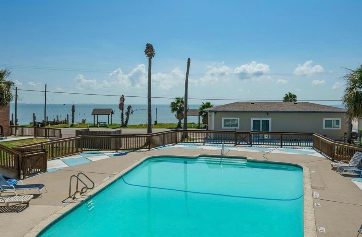 *Superhost* Fish off the boat dock! 3 bed, 2.5 bath first and second-floor condo ready for your boat! Enjoy the sun, shade, and beach in this beautiful condo right on the water. Just minutes from Rockport Beach, Downtown, H-E-B, and Walmart, literally close to everything you might need. This condo has two sun-soaked patios and multiple TVs—everything you want in a romantic getaway, fishing trip, or family vacation. There are 3 pools on the property and utility parking.