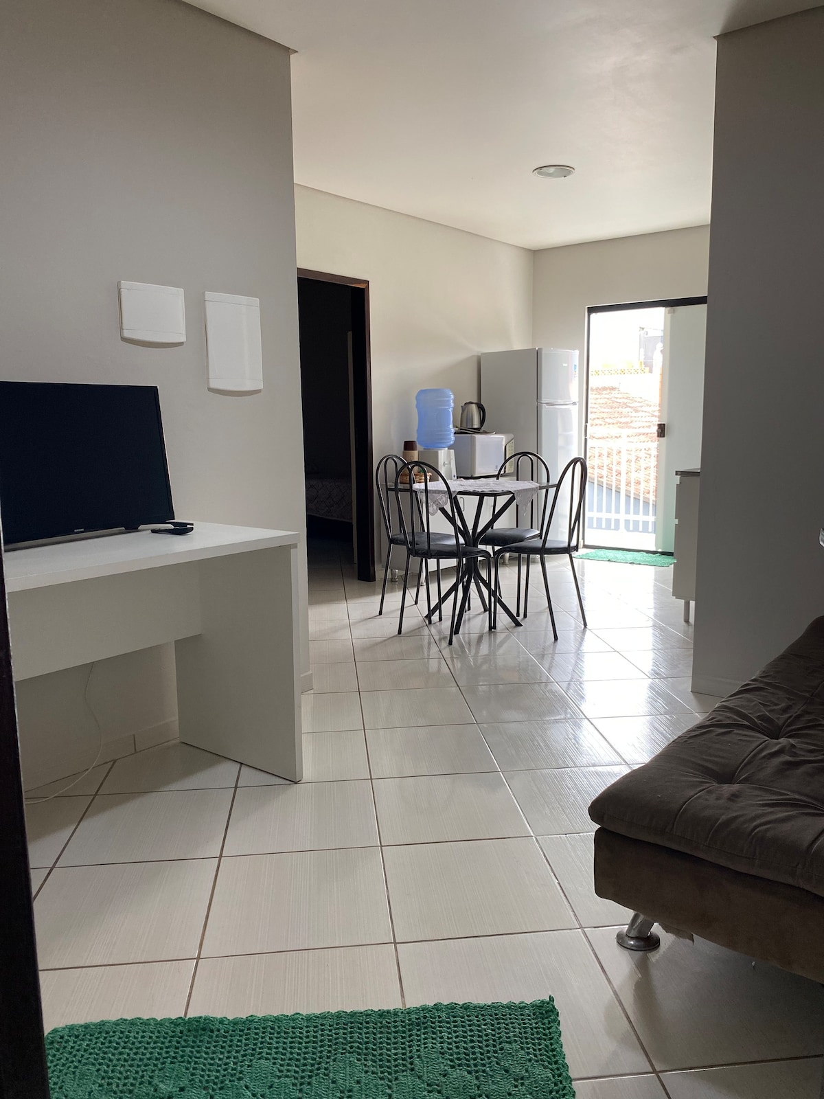 Practical and cozy space with all basic kitchen items, 2 TVs, one in the living room and one in the bedroom with several channels and apps. Next to the Municipal Market, Joinville Cathedral, Rua das Palmeiras, shops, banks, right in the heart of the city. Quiet and pleasant place, with its own garage. An easily accessible place for you to get around on foot without worrying about traffic. Note: There is a private parking space, but it is for a small car.