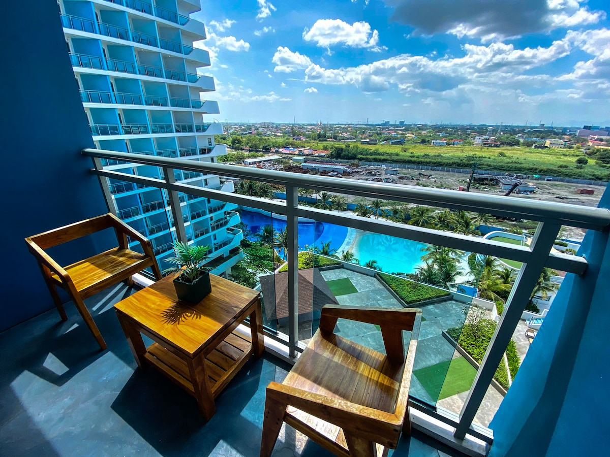 Rooftop pool is open. Relax & enjoy breathtaking mountain views from sunrise over Mt Arayat to sunset on Mt Pinatubo. Our place has 24/7 security, near Clark Airport, 7-11, SM Clark, restos & Fields Ave. Clean, comfy, quiet with queen bed, sofa, kitchen, fast WiFi, Smart HD TV, Netflix, Youtube, room safe, drinking water, tissue. Ideal for couples, solos, business travelers. Free off-street parking is available & public transpo at the door. You'll love it!
