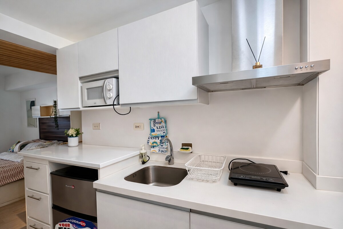 Welcome to The Meydan Suites at Azure North, a Japandi-inspired studio retreat in San Fernando, Pampanga. Just 1.5 hours from Manila, our spacious 2-bed studio comes with a full kitchen, one bath, and a private balcony on the quiet side of Azure. For ₱200 per guest per shift, you can enjoy resort-style amenities including the wave pool, the beach pool, and leisure facilities. It is the perfect sulit escape for couples, families, or barkada.