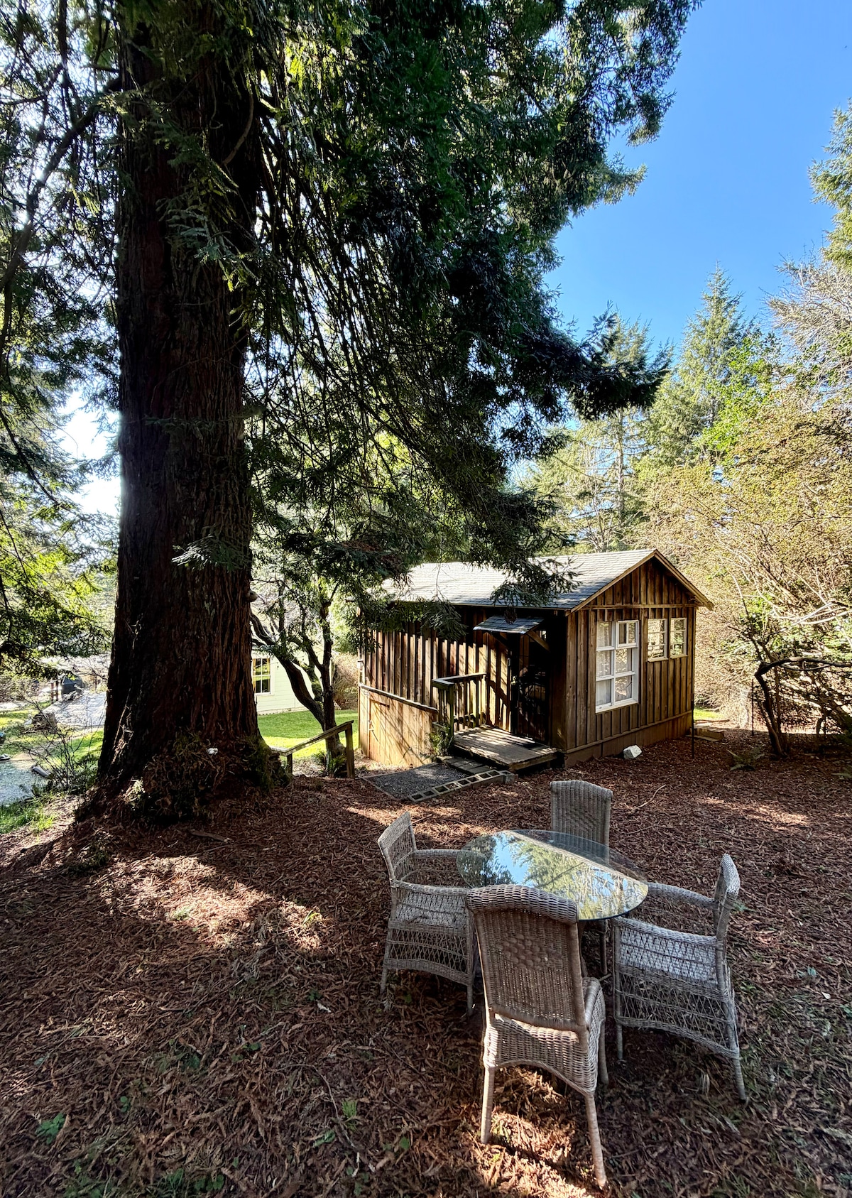 Welcome to Redwood Hideaway, a private converted barn retreat near the redwoods in Arcata, CA, just minutes from downtown Arcata and Cal Poly Humboldt. This 1 bedroom, 1 bathroom getaway offers peaceful forest views, a private patio, fast WiFi, and easy access to town, making it ideal for couples, visiting families, remote workers, and university-related stays.