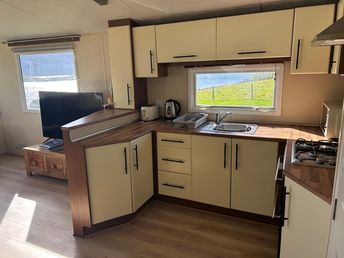 Snug Highland Caravan with Stunning Sea Views