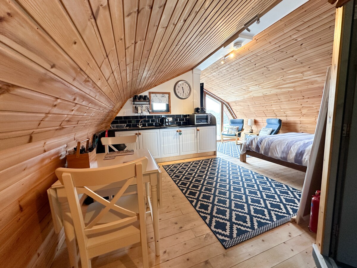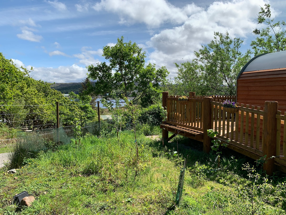 Suilven View is a newly built pod, established in 2018. The pod is nestled on a hillside, located in Baddidarrach. Suilven view pod is up a hill slightly, overlooking Lochinver. There is an ensuite bathroom, open space living room/kitchen area, balcony and excellent views of Suilven, one of our stunning and uniquely shaped Mountain's. The property is unique, charming, comfortable, and well maintained. The pod is 21sqm's or 7 metres by 3.5 metres in size. Ceiling height is 8-9 feet.
