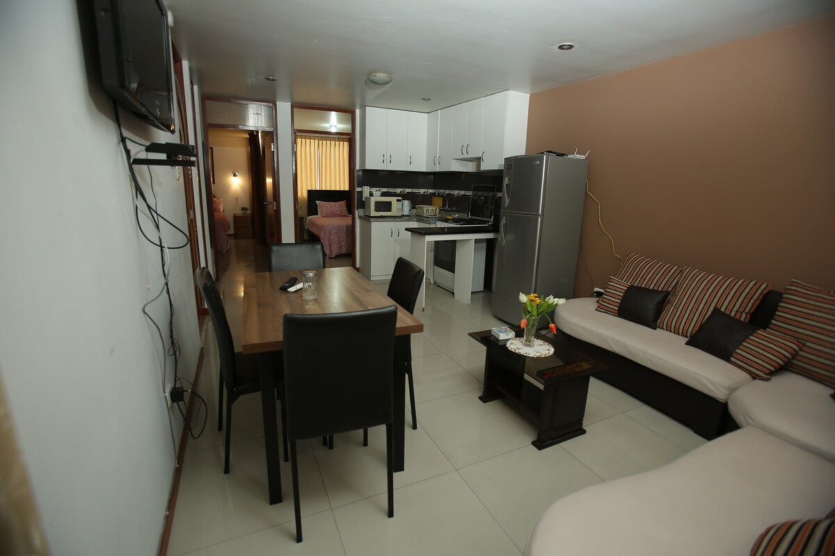 Cayma District Financial and Commercial Center Flexible check-in and check-out High-speed and stable Wi-Fi Private entrance, steps and ELEVATOR 2 Malls 1/2 and 2 blocks away Restaurant, spa in the same building Gyms and everything in the same area Safe area 15 min walk to the historic city center, 10 min by taxi Solar and electric hot water Kitchen NOT fully implemented only basic food preparation In front of the park HBO, Netflix streaming 1 block from the Ejercito Avenue bypass
