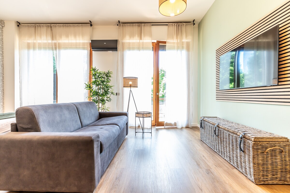 The apartment is cozy and bright, suitable for couples and families with children. It has a living room, kitchen-dining room, two double bedrooms, two bathrooms and a private garden. Guests have access to 1 parking space inside the private courtyard. Il Piccolo Ristoro is located in the center, in a quiet and well-served residential area. It is a 10-minute walk from the historic center and the station. A stone's throw away is the city park and shops. Linens included, free Wi-Fi, pets allowed.