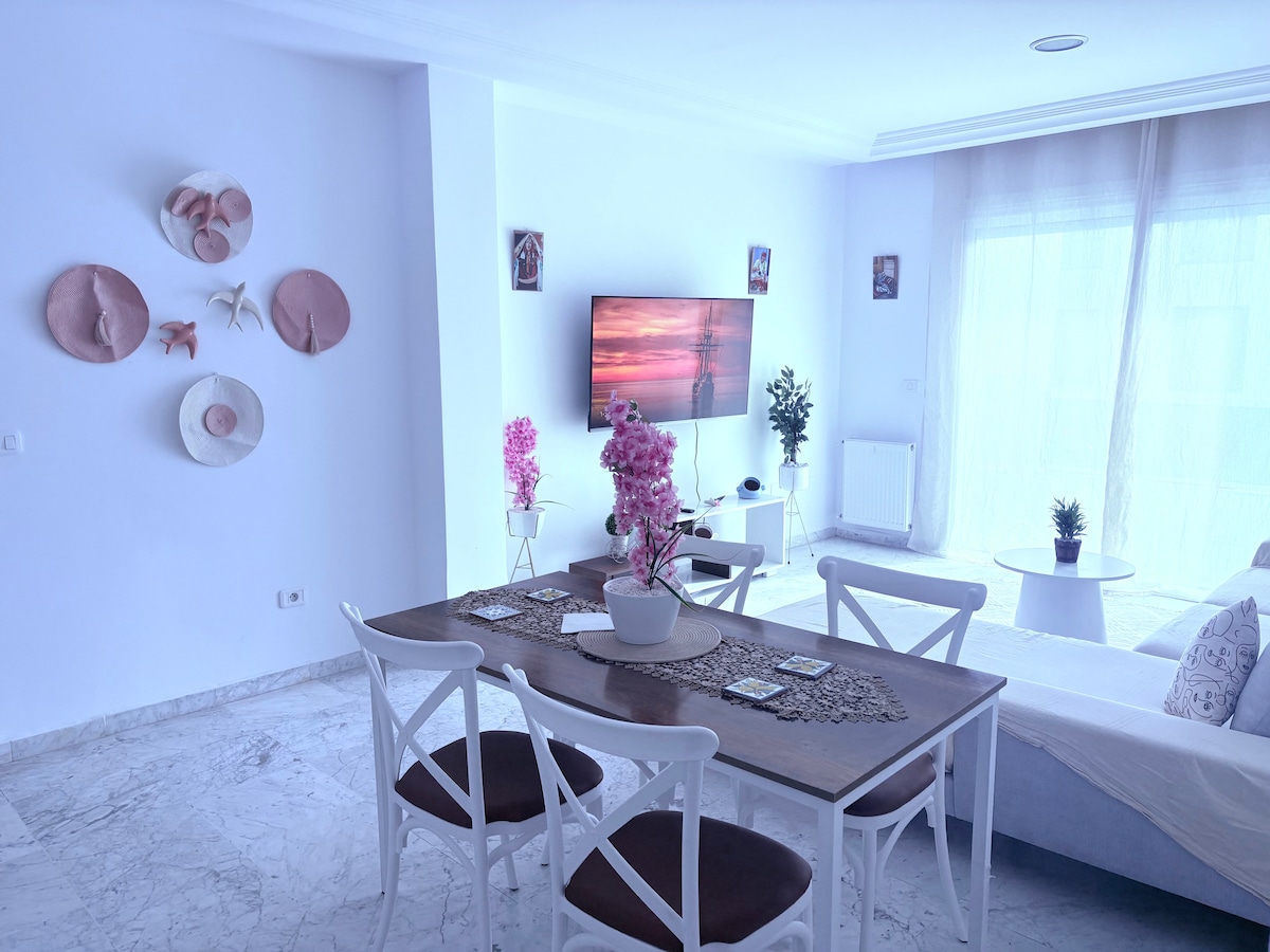 Welcome to our bright and spacious duplex apartment, ideally located in Raoued Plage, just a 1-minute walk from the beach. Set in a small, quiet, family-friendly residence, this two-level apartment is perfect for a relaxing seaside getaway, only 15–20 minutes by car from Gammarth and La Marsa, and 30 minutes from Tunis airport and city center. A car is recommended for comfortable access and getting around.