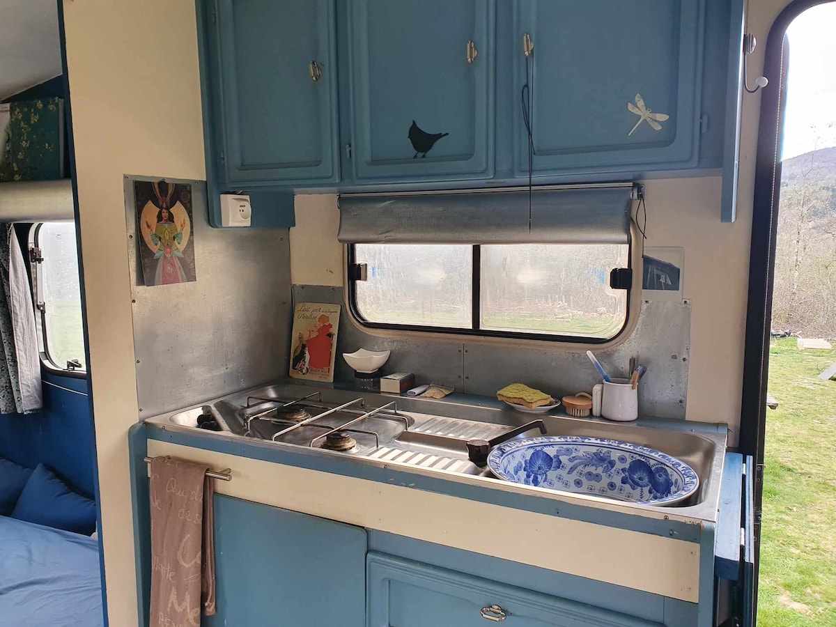 1970s caravan completely restored with taste in a country style. It is located in the hills of Lauragais in an atypical setting just 10 minutes from Castelnaudary. This caravan will allow you a total change of scenery while respecting nature, a way to disconnect from everyday life, conducive to relaxation and rest.