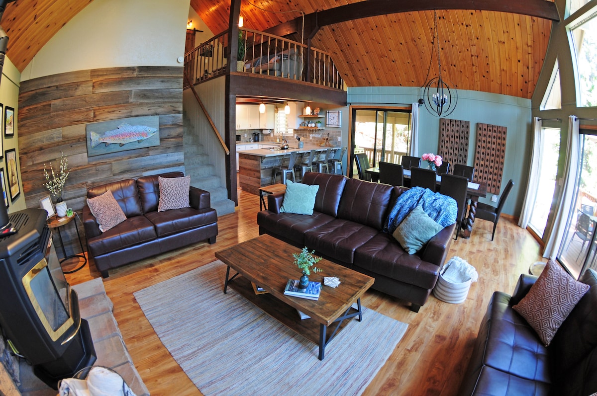 Welcome to The Mid Century A-Frame in Twain Harte! Replenish your mind and body’s energy while staying in this beautiful mid-century home! Sit back on the comfortable, modern-design furniture and enjoy the open space of the floor-to-ceiling window in the living room area. Hang out in the terrace as you smell the scents of pine trees, hear the chirping of birds, and delight your eyes in the sunset.