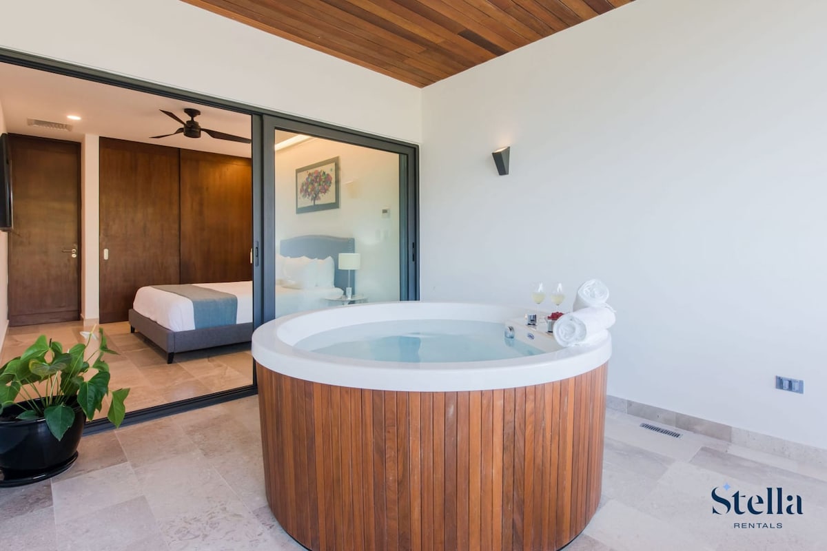 ★ READY FOR NOVEMBER 2025 - PLEASE READ EVERYTHING ★ Most desired area of Playa del Carmen on popular 38th Street between famous 5th Ave and the Beach. Peaceful. Great for families & large groups. ➤ Surrounded by restaurants & entertainment ➤ Steps from Beach or 5th Ave ➤ Walk Score 95/100 close to everything ➤ Elevator ➤ Private parking (1) ➤ Large jungle-view balcony w/ grill & hot tub ➤ Rooftop pool ➤ Equipped Kitchen ➤ Dining for 12 ➤ Full gym ➤ Washer & Dryer ➤ Fiber Optic WiFi (300+ Mbps)