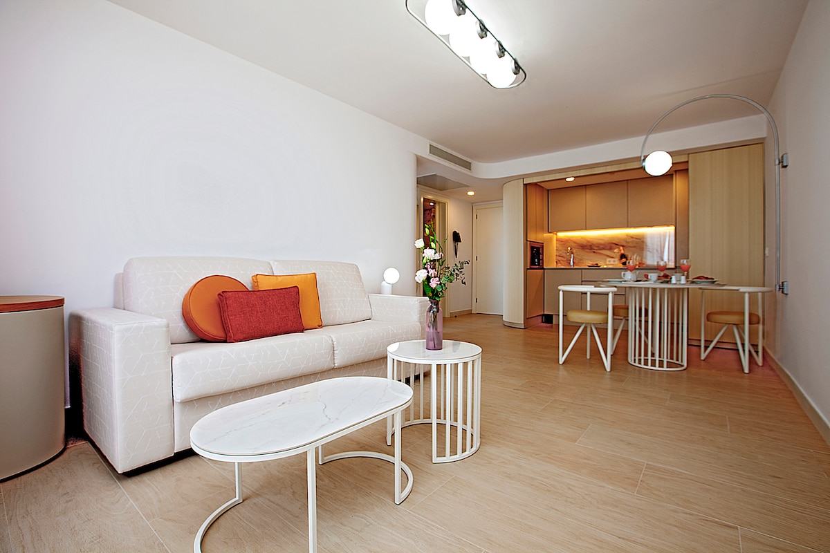 Exclusive, beautiful new beach front apartment on Playa Reducto beach, perfect for swimming and water sports. Bus stops 5 min. walking and airport connected. Close to beach bars, restaurants and sea front promenade. Floor to ceiling windows from the lounge area with wonderful beach views. 2 sofas in TV seating area. Open plan to dining area. Fully equipped kitchen. Master suite has panoramic beach views, suite bathroom, walk-in closet. The twin room have built in wardrobe and single beds.