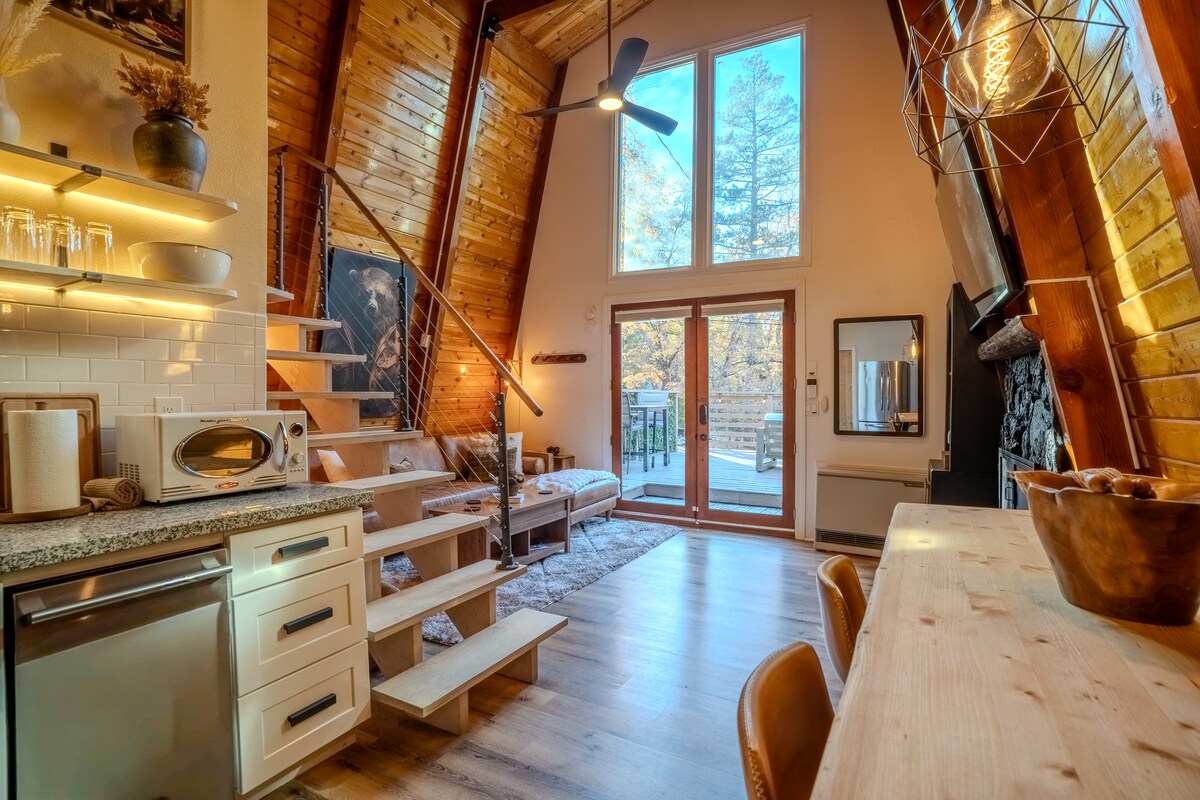 Relax in the reading nook next to the fireplace, entertain or BBQ on the new deck, or work remotely in the dedicated office space. Convenient location, 15 minutes to Snow Valley, 20 minutes to Lake Arrowhead 20 minutes from the base of the. Walking distance to Groceries, Food, Farmers Mkt on Sat in summer. Parking on site, paved driveway has significant slope but parking is provided at base of driveway for snowy days.