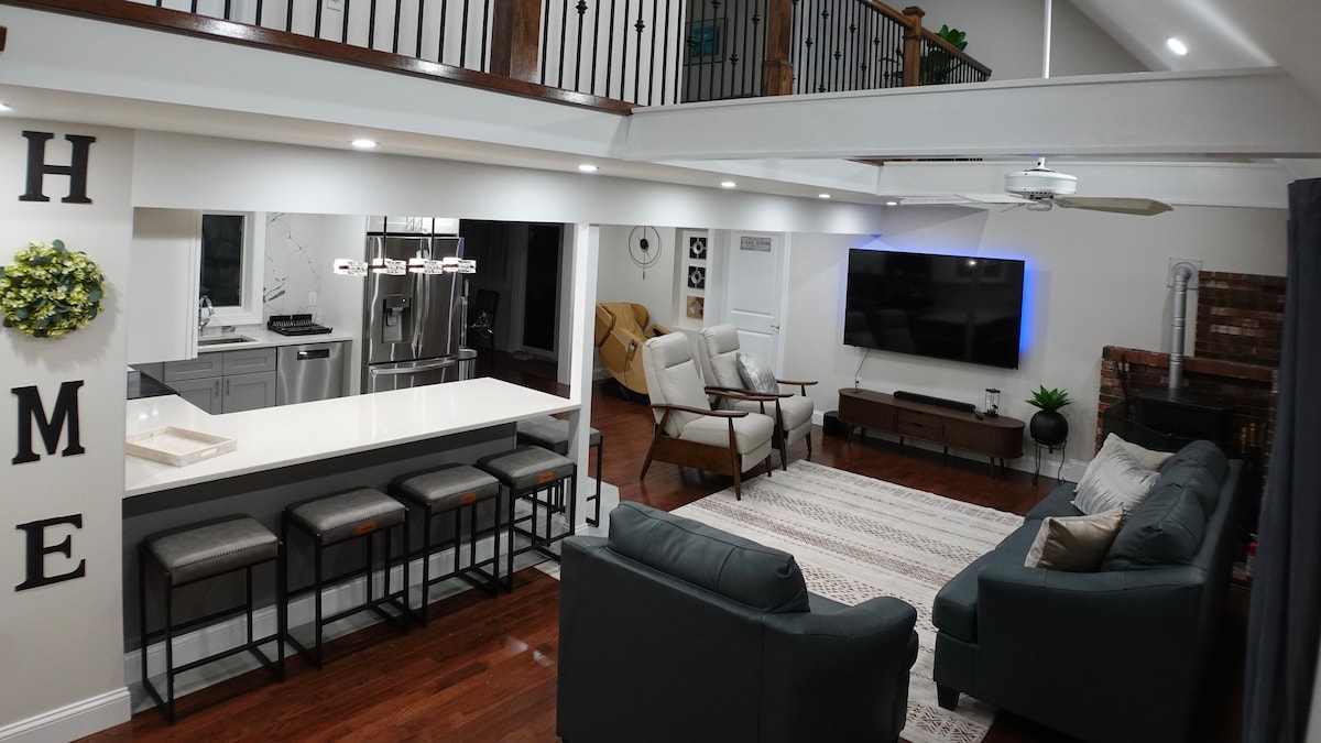 A stunning chalet ideally situated in the Pocono mountains. Your destination for a weekend escape or a longer stay all year round! Outside one can enjoy a natural setting in a beautiful 1-acre private wooded property, hot tub, two fire pits, a deck for morning coffee, or a delicious BBQ. Our home offers a tranquil interior atmosphere and home is conveniently located near all Pocono Mountains' seasonal activities. Whether you want to unwind or recharge, our home provides the perfect retreat.