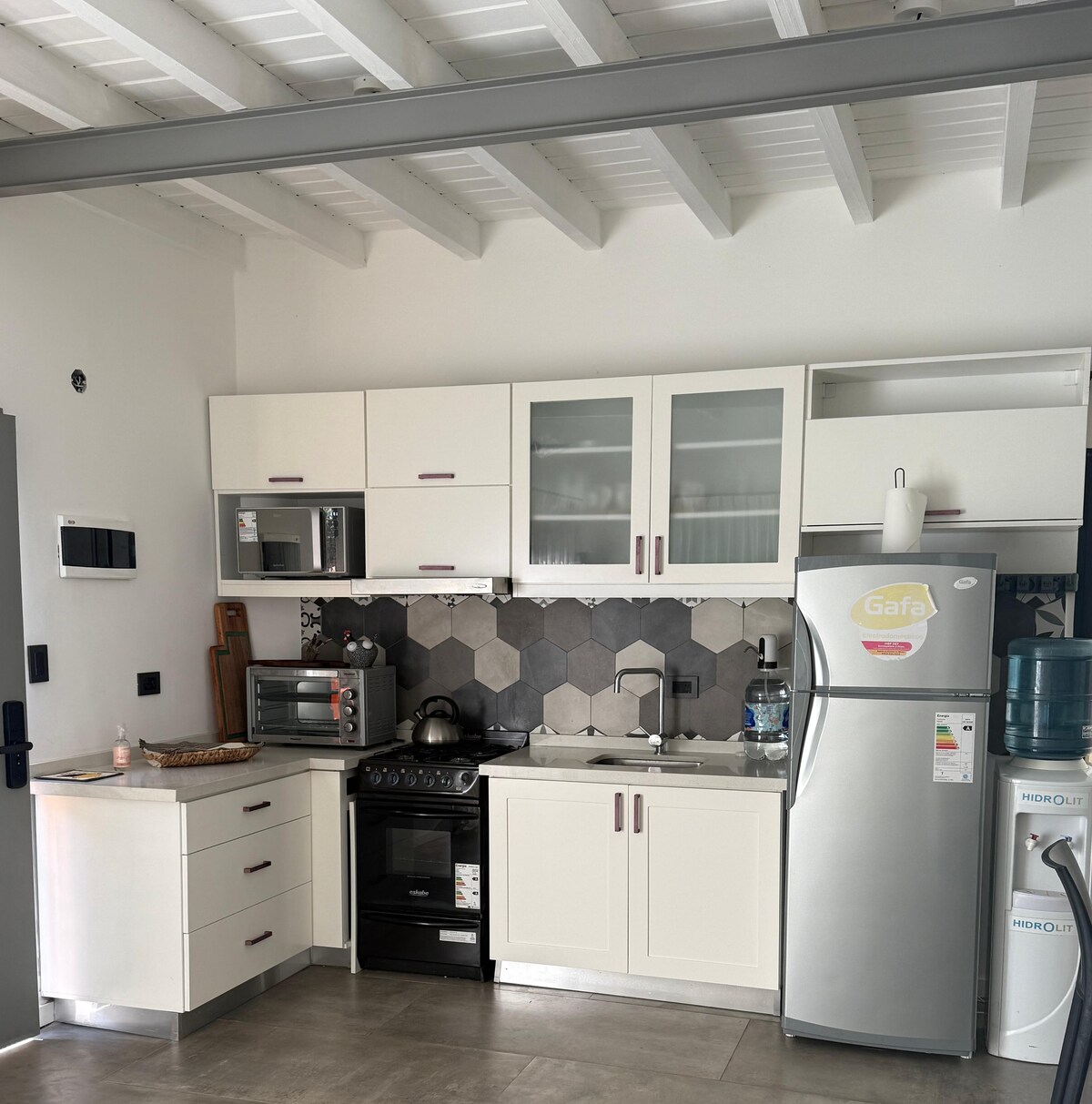 Our house is built almost three meters high, between the river and a beautiful forest in the background. It has huge windows that allow you to enjoy nature all the time. It has details and amenities designed to relax, read and cook. The floors are made of wood, there are stoves in all rooms, salamander and fans. In addition, it has a large deck with gallery and hammocks. The place is magical: it is on the Gelvez stream famous for its tranquility and beauty.