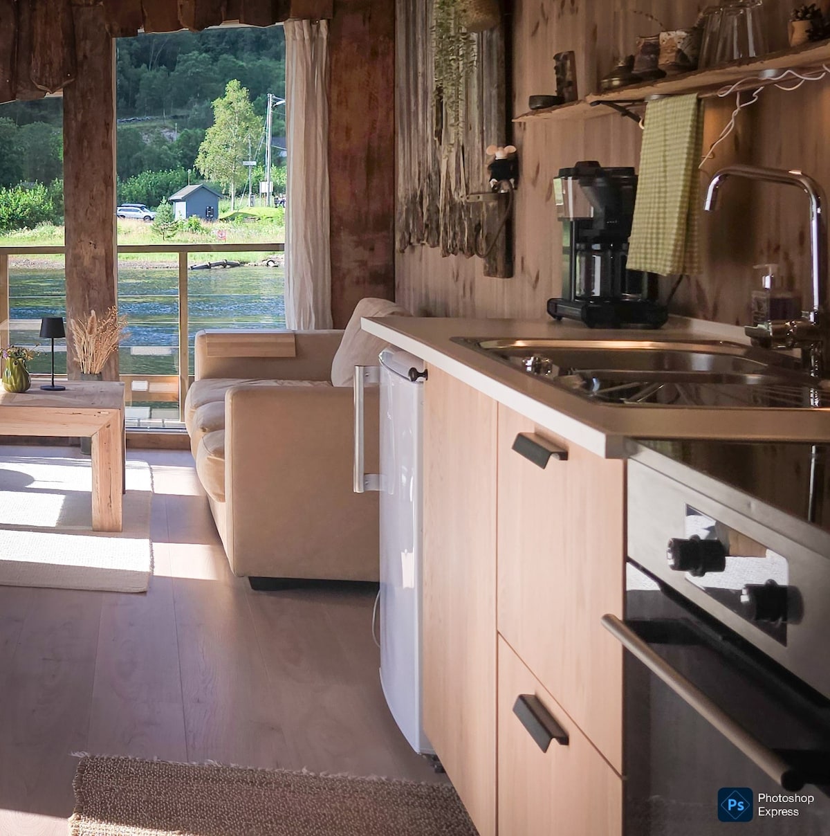 The micro house is located in peaceful and scenic surroundings in Solbakken farmyard on Os. In front of the house is Gallery Solbakkestova with its associated sculpture garden that is always open to the public. Around the house goats graze, and you have a view of some free-range chickens, and some alpacas on the other side of the road. The house has terraces on both sides, where it is lovely to sit and take in the surroundings and feel the peace. There are also great hiking trails nearby.