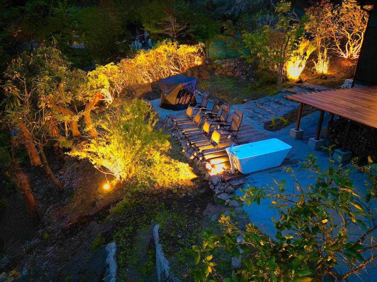 Outdoor Villa for Adults with Sauna, BBQ, Bonfire, and Views of Mt. Fuji and Lake Yamanaka