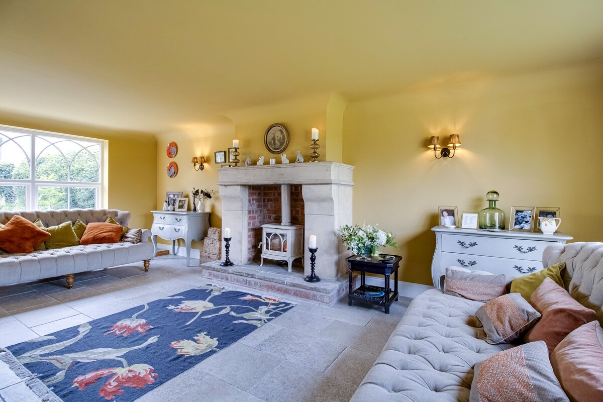 Take time out and relax in this calm, stylish, rural space. Enjoy spending time in the luxury setting, surrounded by farmland and nice views with your home amenities. Take in the views from your super king bed, large freestanding bath or the Juliet balcony. Relax in the large living area watching your favourite films on the 75inch smart TV, WIFI and surround sound. You have a kitchen that is equipped with electric fan cooker and 2 hobs to cook your meals and a dinning table to eat them at.