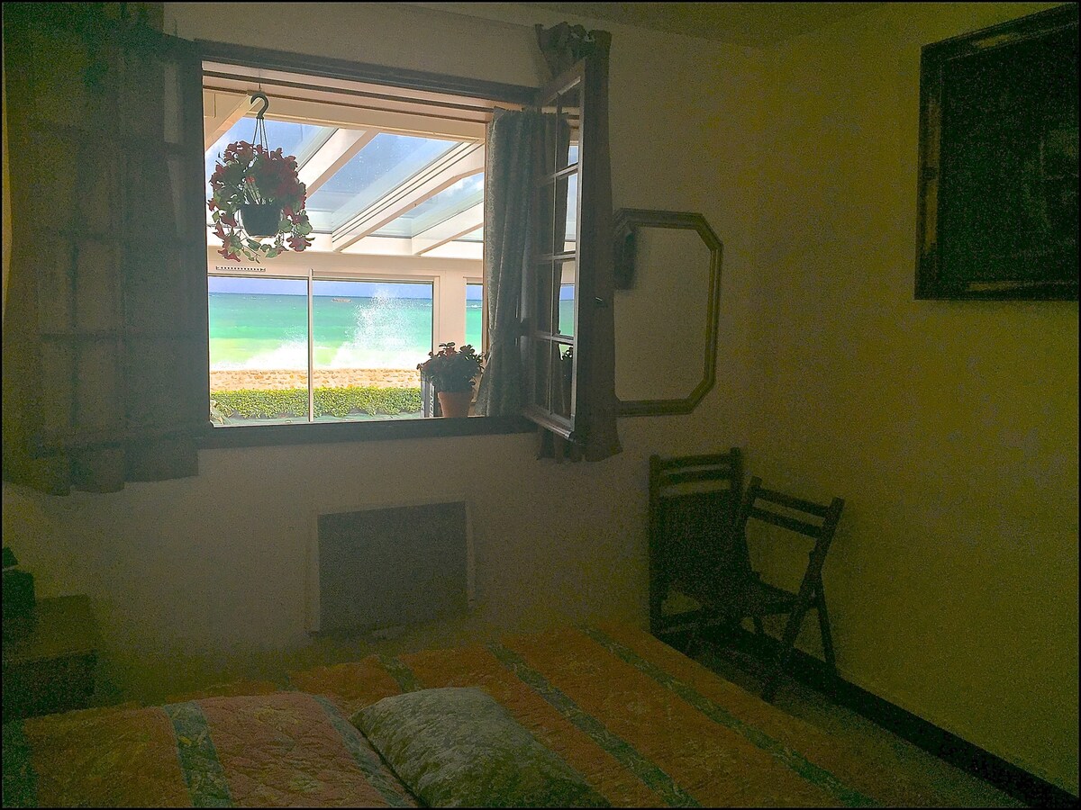The "ARROMANCHES" rental is an apartment located on the 1st floor: its large bay windows allow stunning views of the beach. Just go down the stairs and out of the garden to access the sea. The "BORD DE MER" rental is an apartment located on the ground floor and is fully equipped for people with reduced mobility. They each include 2 bedrooms and a bathroom and/or shower. Before booking, if you need a PRM Gîte, contact us to check availability.