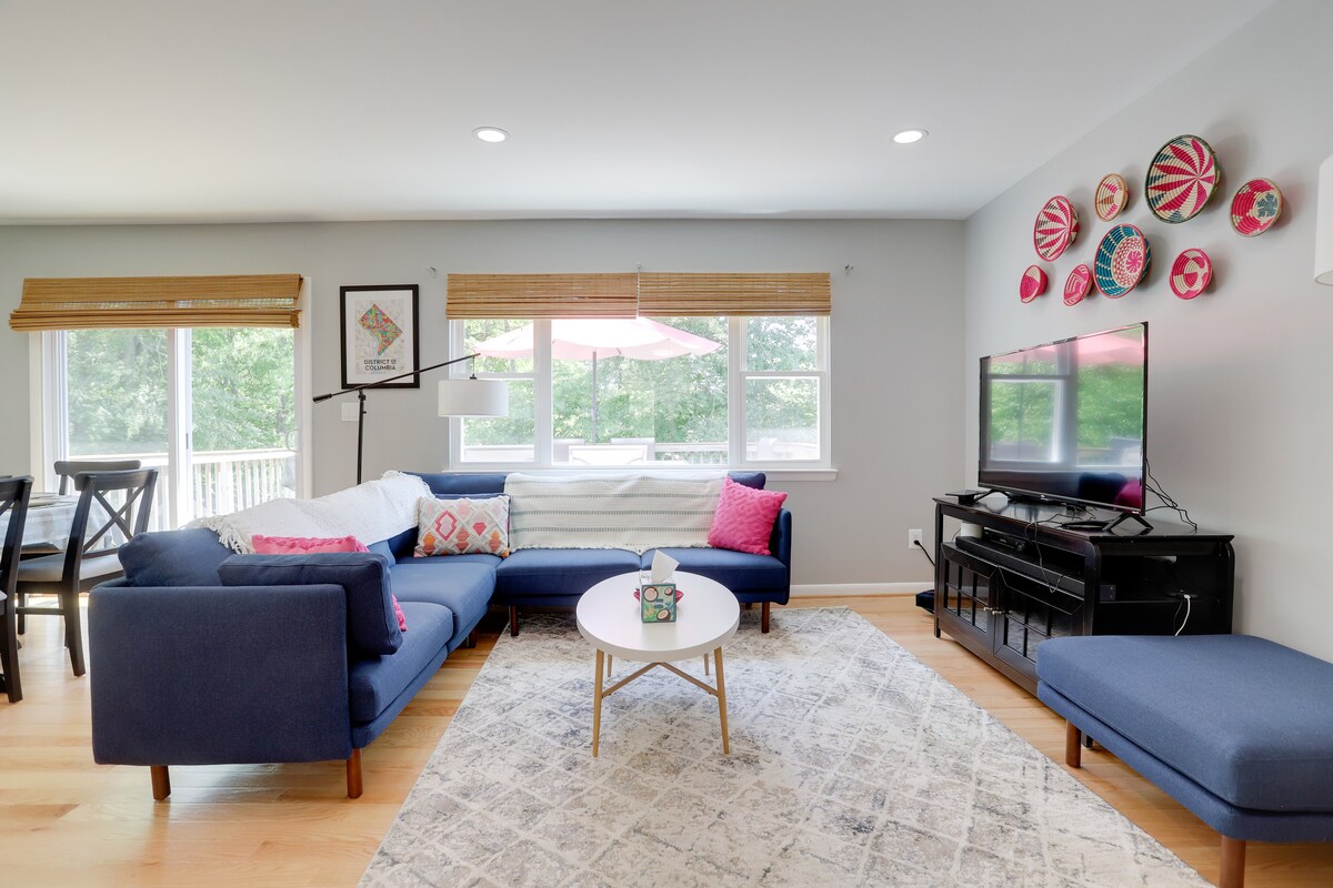 Escape to our spacious, eclectic family retreat in Silver Spring, perfect for large groups! This unique property combines a 4-bedroom main house with a connected basement apartment, comfortably hosting your entire crew. Enjoy a 1/2 acre private backyard with fire pits, a game room with air hockey & arcade games, and a dedicated workspace. A vibrant and memorable getaway awaits!