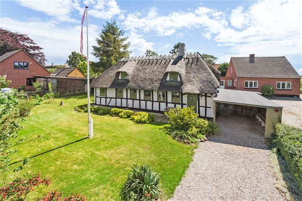 Relax in this unique and tranquil home The house is a classic Danish country house with a thatched roof. It is well furnished with a kitchen where you can actually cook and a small but well-functioning bathroom with underfloor heating. In both the bedroom and the room, there are good beds. 160 and 140 cm wide, respectively. In the loft, you also sleep well, on two mattresses 80x200 The garden is cozy and relaxed Five km to the west you will find Åkrog Bay with the lovely beach "Feddet" and a little north of the lovely market town of Assens