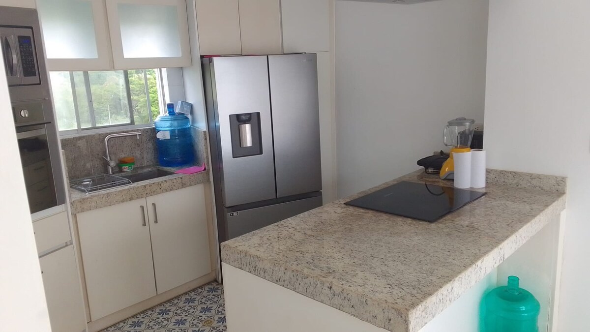 Enjoy Atacames... its sea, sand, nature and surroundings As well as the peace of mind of staying in a safe and private place with direct access to the sea. Outdoor parking subject to availability. Services include Pool Air conditioning Wi-Fi 2 fans 2 bunks 1 1/2 square = 4 beds 1 double bed 1 Sofa bed 1 retractable 1 1/2 bed Living room, dining room, kitchen with oven Kitchen utensils. Refrigerator A sandwich bag Blender Rice cooker Microwave TV Two full bathrooms