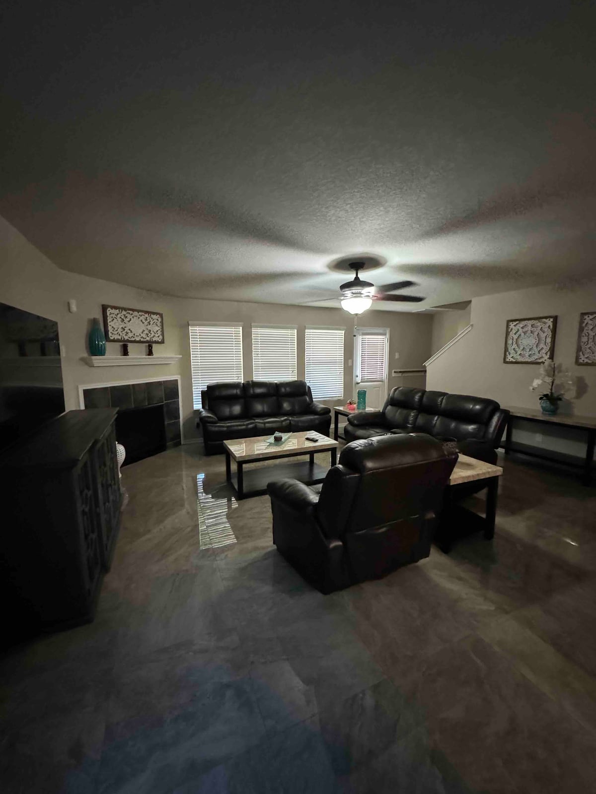 Spacious, modern, simple decor. Use of all 3 bedrooms,(queen bed in primary, and full bed in the the 2nd,(3rd is an office with a desk). 2 Full bathrooms ( 1tub/1shower) in a quiet neighborhood. Large drive with parking (allows for a boat/RV). No garage access. 5 Miles to IAH, family activities; great restaurants. Costco, Kroger, Dollar General. Blocks to US 59, NE Med Cen/Kingwood Med Cen. Quick Uber,Door Dash close to the airport. Great for couples, singles, travelers, and small famiies.