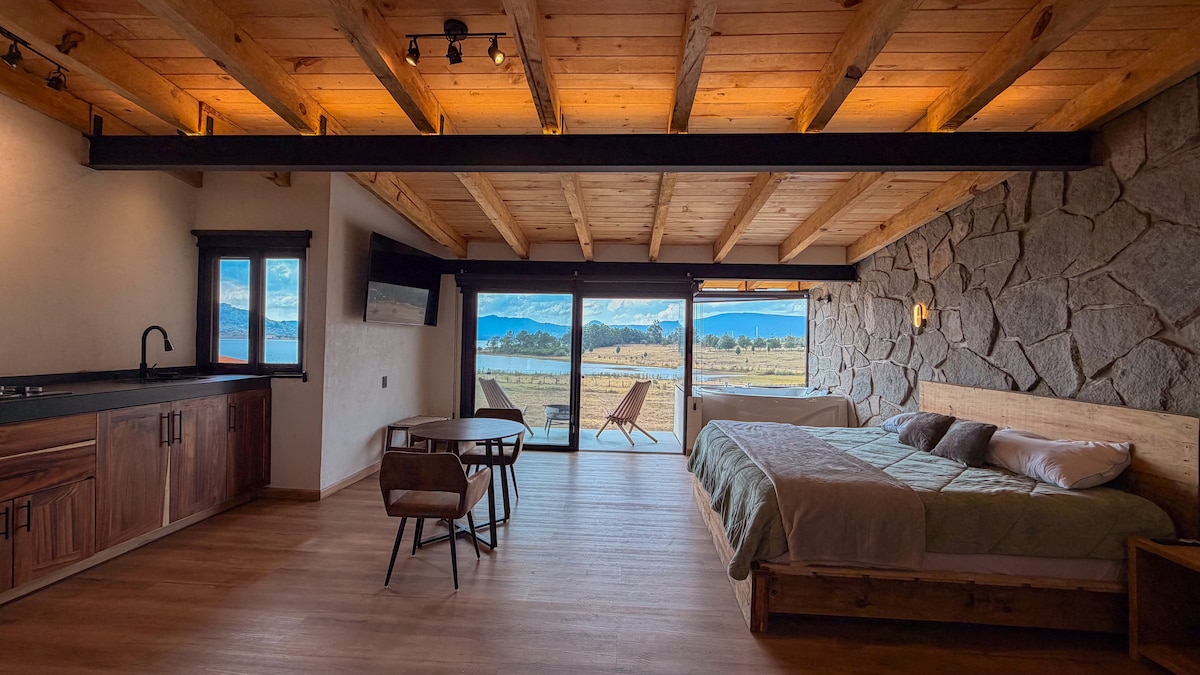 A haven of peace and quiet in the Atemajac de Brizuela forest The fireplace is the focal point of the cabin, creating a cozy and warm atmosphere that invites you to relax and enjoy the company of loved ones. It is designed to stay warm even on the coldest nights, making it the perfect place to escape stress and the daily routine A small lake offering a quiet atmosphere is just a few steps away. You can spend hours sitting on the lake shore