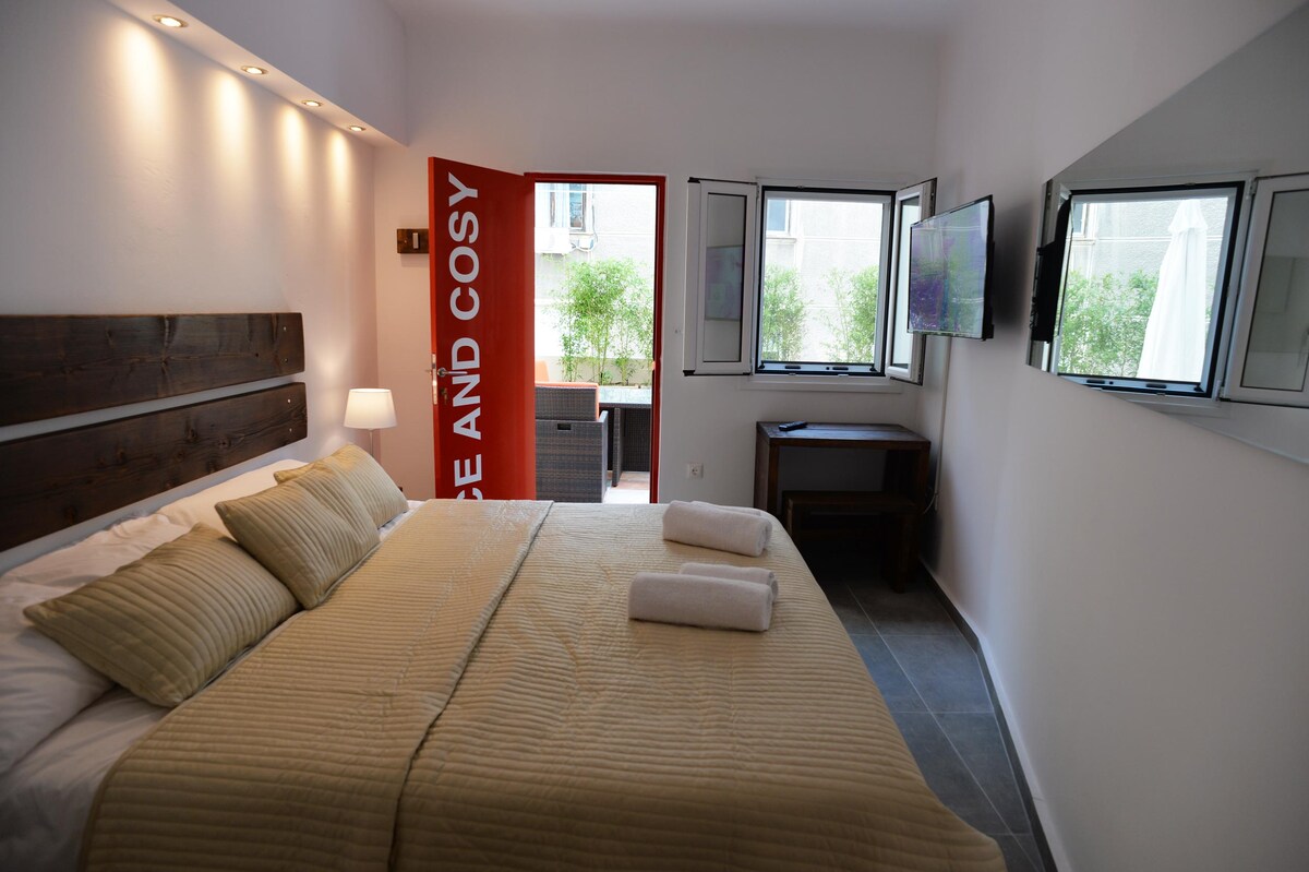 Choose this place if you are looking for a real Athenian experience combined with high-end hospitality in a fully renovated space. The Market Loft is located in the heart of the historical center, nearby major metro stations and walking distance from all the sights and attractions. It has a unique city view from the mountains to the sea, including a grand plan of the Acropolis and Lycabettus hill. It is designed minimally with high-end finishes, luxurious aesthetics and brand new equipment.