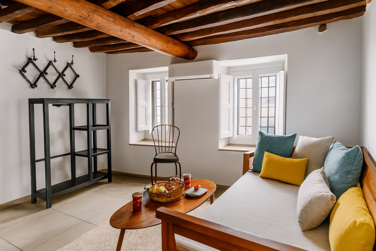 Take a bath with dolphins in a tiled tub created by the French artist Christophe Reyre in this characterful home. This designer also created the handmade spiral wooden staircase leading up to the mezzanine sleeping area surrounded by golden stone. First timer on Airbnb? Register and book our apartment using this link to get $25 off your first adventure: https://www.airbnb.com/c/njaved7?currency=EUR It's a studio of 30 m2 situated close to the historical centre of Athens. It consists of: - Kitchen - Living room with a single sofa. - Mezzanine with a double mattress. - Bathtub/W.C. - Linen and towels. - Free Wi-Fi 40 Mbps - Heating - Air conditioner. The kitchen is fully equipped with electric hot plate, microwave, fridge, coffee maker, toaster. Can accommodate up to 2 persons( the 3rd person upon demand). SMOKING IS STRICTLY PROHIBITED. Pets are not allowed. Always at your disposal! The house is in Kolonos, the oldest neighborhood of Athens. This is a convenient location for reaching all the tourist attractions in the city by metro. Find us: From the airport: -By metro to the Sepolia or Attiki station, 6-7 mins walk to the Studio. -By taxi about 35 Euro (various cost) From Piraeus Port: -By train to Attiki station, 6-7 mins walk to the Studio. -By taxi (est. 15 euros cost). NO SMOKING NO PARTIES Guests must have to provide their passport/ID details upon their arrival.