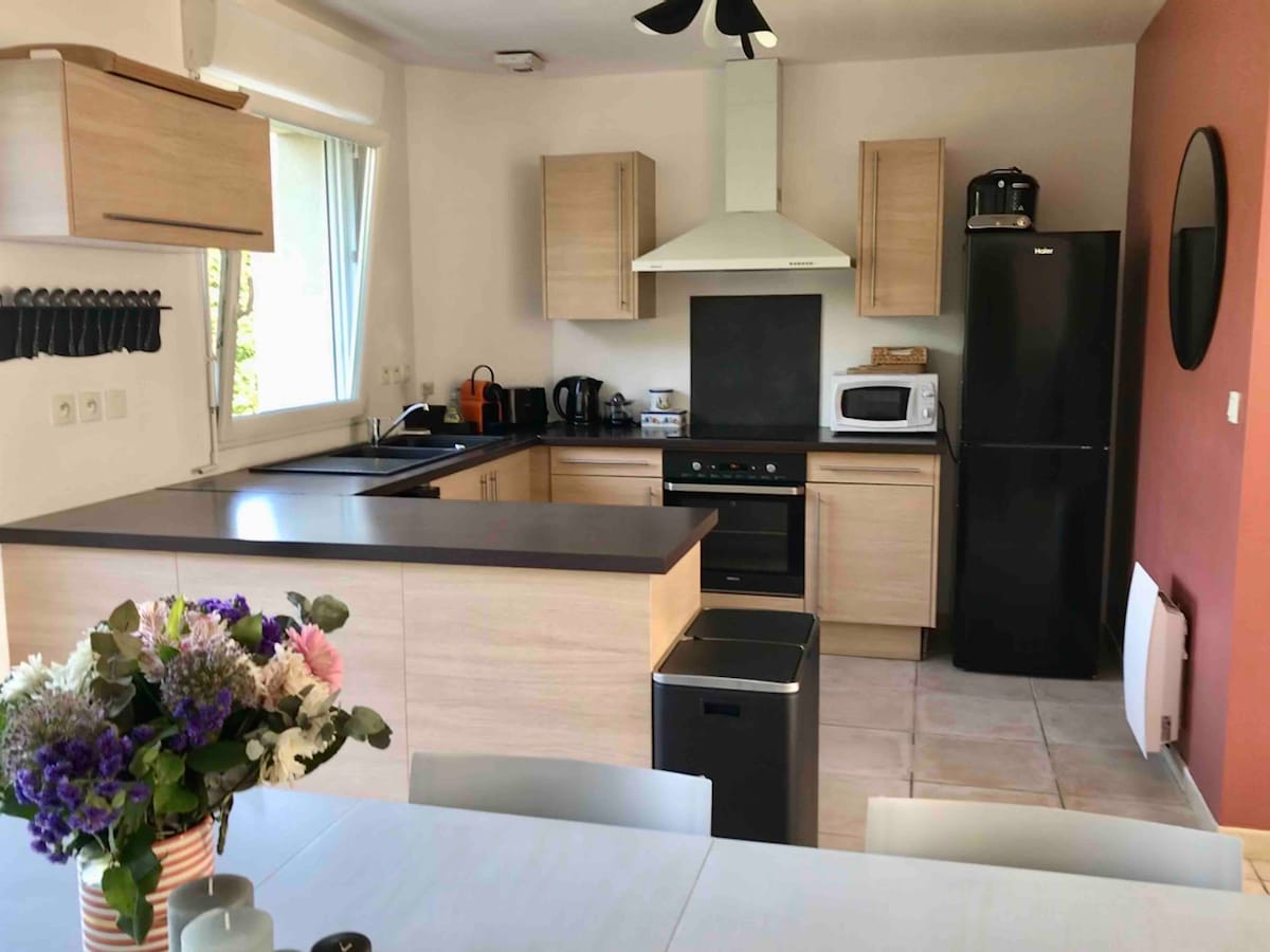 We rent this large family house between land and sea. Recent work has been carried out (June 24). Large sleeping capacity (10-12 people). The house is fully equipped for a great stay in this beautiful region. 3 bedrooms with queen size beds and plenty of storage + a very large dormitory room with bunk bed (1 bed at the top and 2 beds at the bottom), single bed and a sofa bed. The house also has the necessary for a baby (high chair, bed, table...)