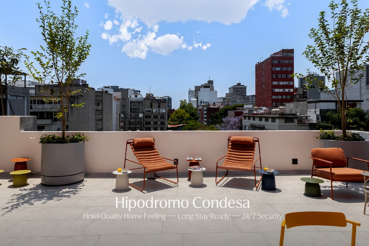 Discover luxury living in Condesa, CDMX, with our elegant 1BR apartment. This residence balances modern design and classic charm. Step out onto your private balcony & terrace to enjoy coffee with a view, or head up to the rooftop garden, an urban oasis. Here, you can relax, read, or take in the cityscape. The apartment boasts a luxurious interior with high-end finishes and designer touches for your comfort. Your stay promises an unforgettable experience