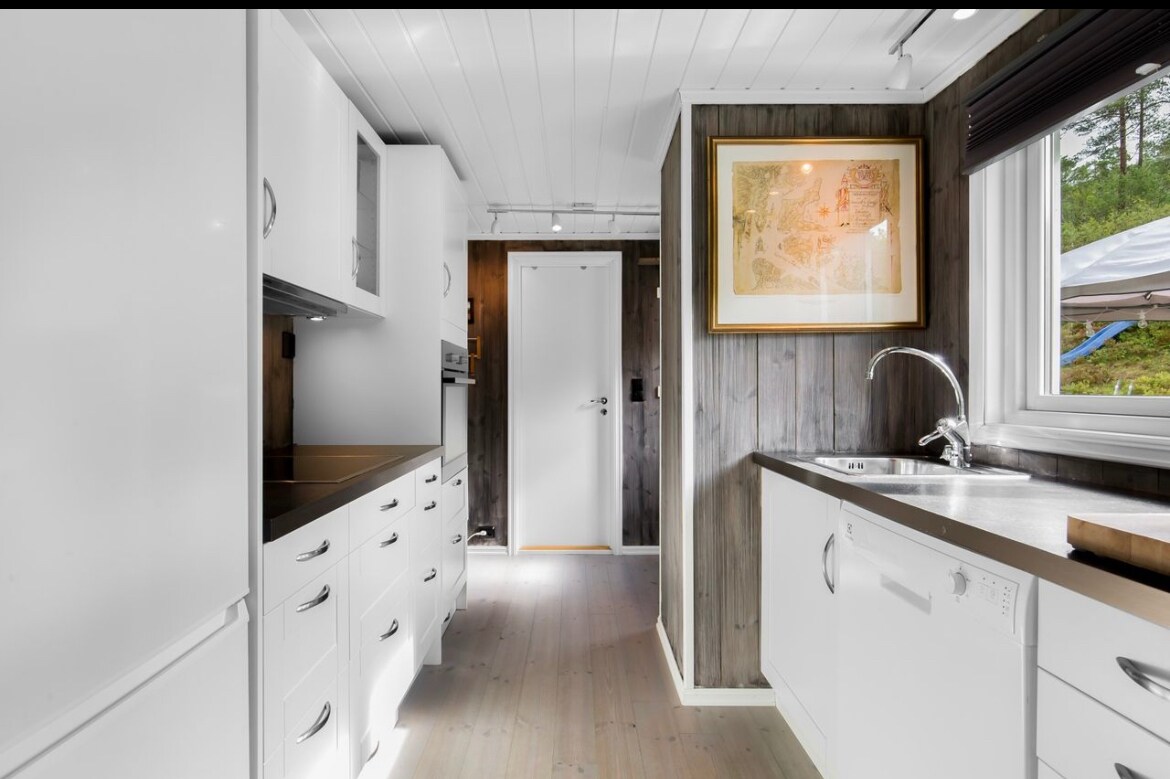 Create memories for life in this unique and family-friendly place. Beautiful location right down by the lake with great fishing opportunities and easy crab fishing in the fall. Living room with kitchen and dining area. Bathroom with shower and washing machine and toilet. 1 small bedroom on the ground floor. Open loft with 1 double bed and 2 single beds. Windows on both sides. LARGE terrace with sun all day. See photo.