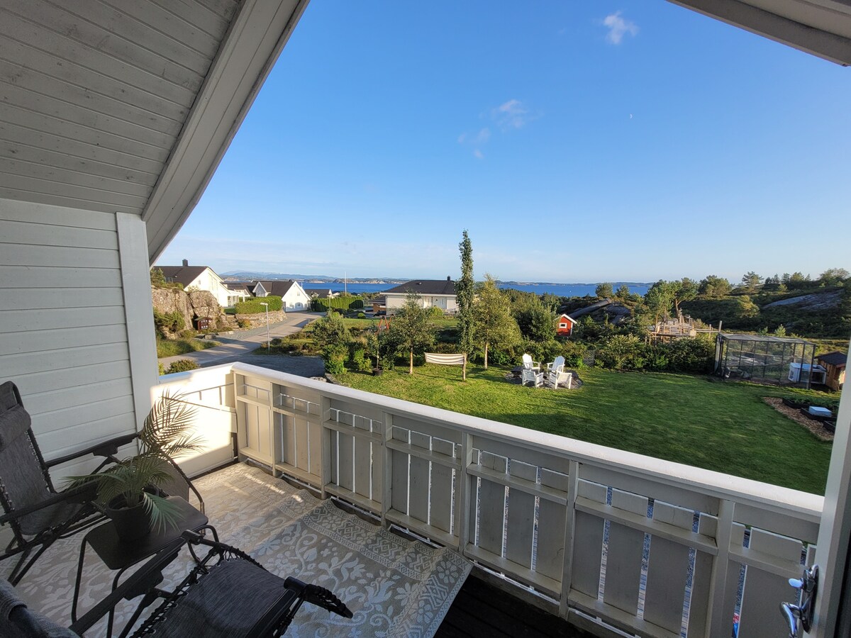 A flat with a spectacular view: Through the big windows, you see the fjord and the mountains, and far away, you can see the glacier. An easy trip from Bergen Center. One hour with a speed passenger ferry from Strandkaiterminalen, Bergen. Or from Flesland Airport, 15 min bus/taxi to Flesland port, and 40 min. to Møkster. The flat is situated a 15-minute walk from the Møkster harbour, 1.2 km. There is a good modern grocery store at the harbour.