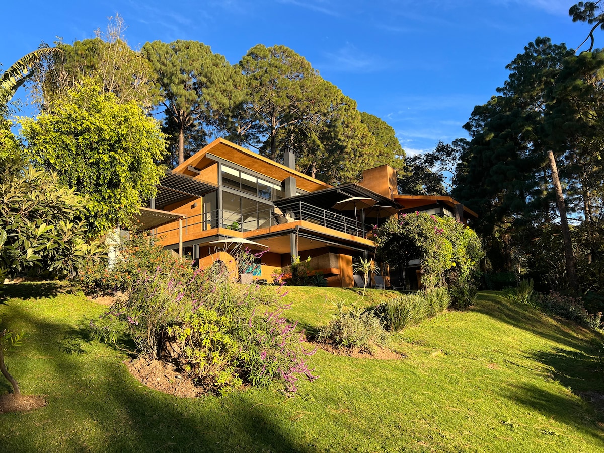 House overlooking the lake and the mountains, in the middle of the forest, with its own garden of 5,000 m2, private pool with heating and private gym; located in a subdivision with security 24 hours. Architectural design in slopes with high ceilings, wooden beams and columns, red tile, mud and wood. Decoration with traditional elements of a contemporary Mexican house. Exceptionally bright with views of the forest and gardens from any window.