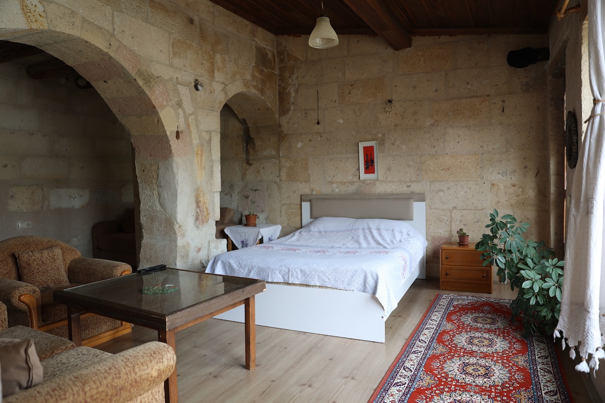 this recently renovated traditional Cappadocian house has three cave rooms with ensuite bathrooms opening to the patio, it has floor heating and great views over the valley and the old town, it's five minutes walk away from Balkan valley which is considered as one of the most beautiful valleys of Cappadocia.