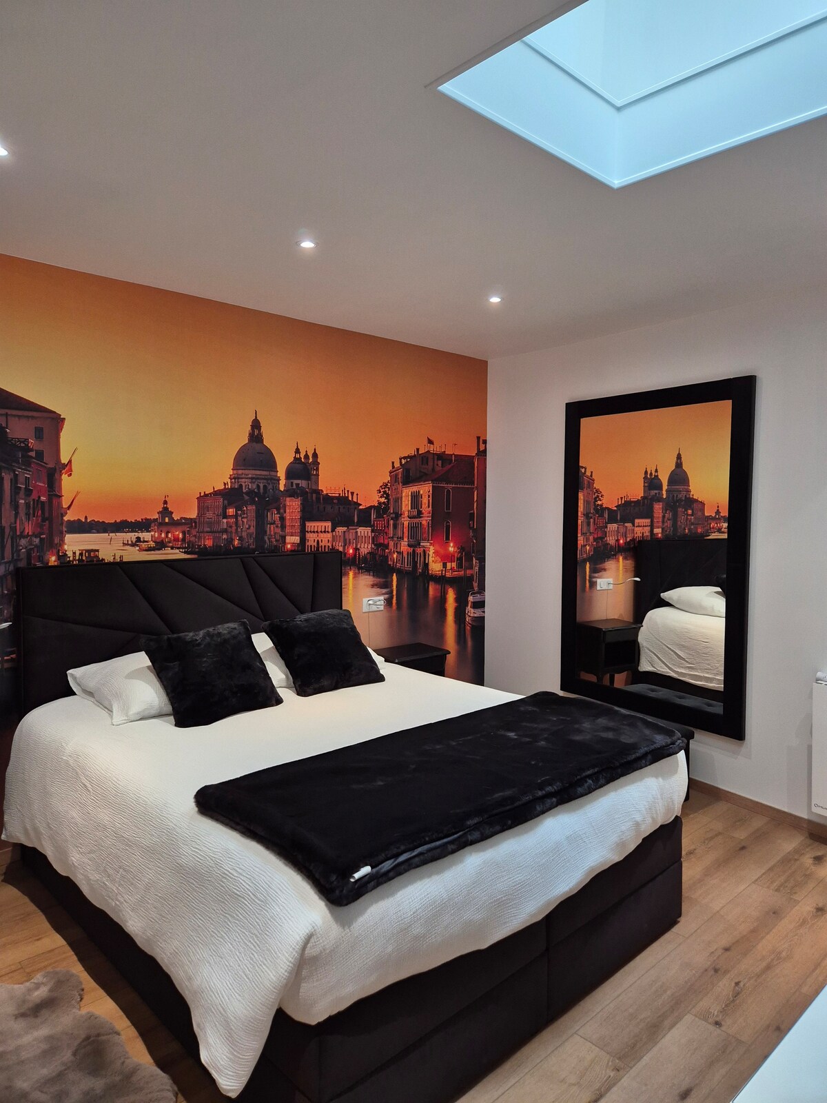 Treat yourself to a rare escape in one of the most prestigious villages of Champagne. Our apartment, nestled in a characterful 1894 building, welcomes you into an elegant atmosphere where historic charm and modern comfort blend seamlessly. Fully air‑conditioned, the space is designed to make everyone feel at home. The living room, featuring exposed beams, Voltaire armchairs and vintage furniture, offers the perfect setting for shared moments.