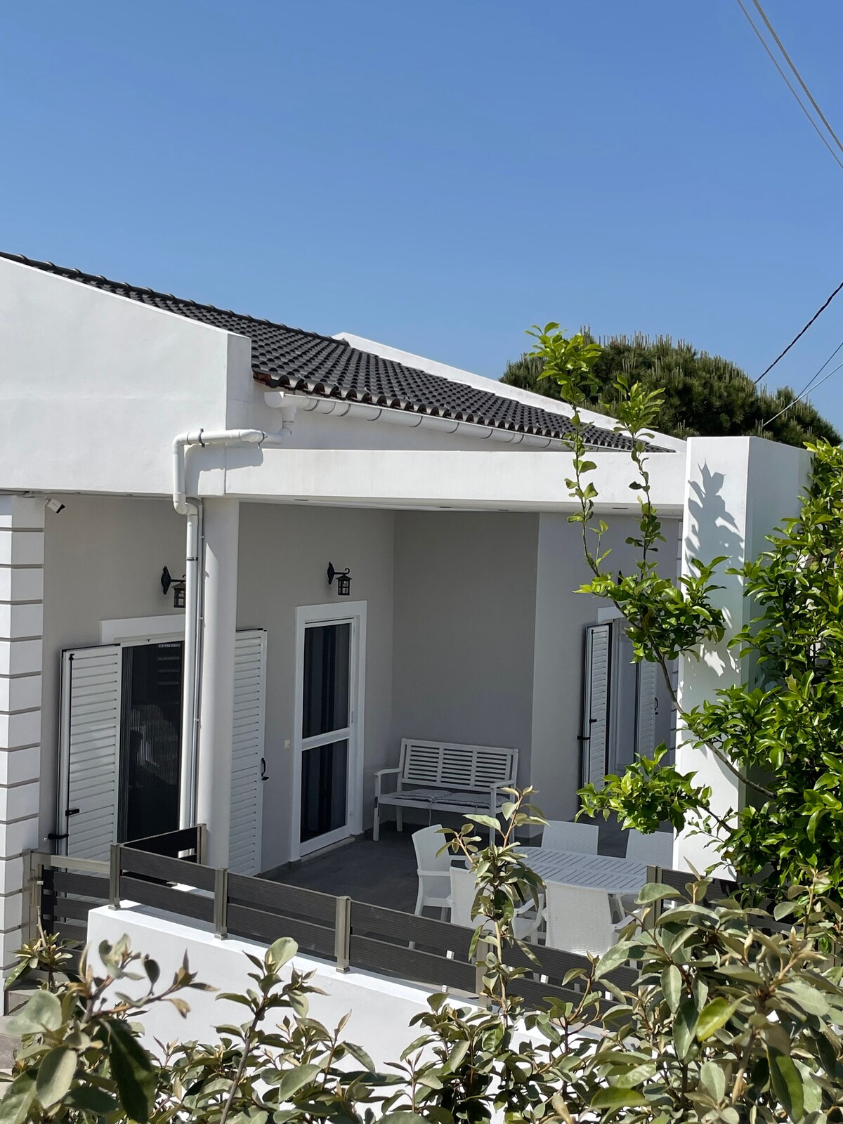 This wonderful and independent GROUND FLOOR house of 100 sq.m., is located in a very quiet neighborhood in Korasida, with amazing views of the Aegean. It is 750 meters from the wonderful beach which is one of the most beautiful in Evia. This ground floor house is newly built and because of this it is available for the first time in September 2021. The accommodation is Ideal for Families. Enjoy your sunbathing on our garden lawn.