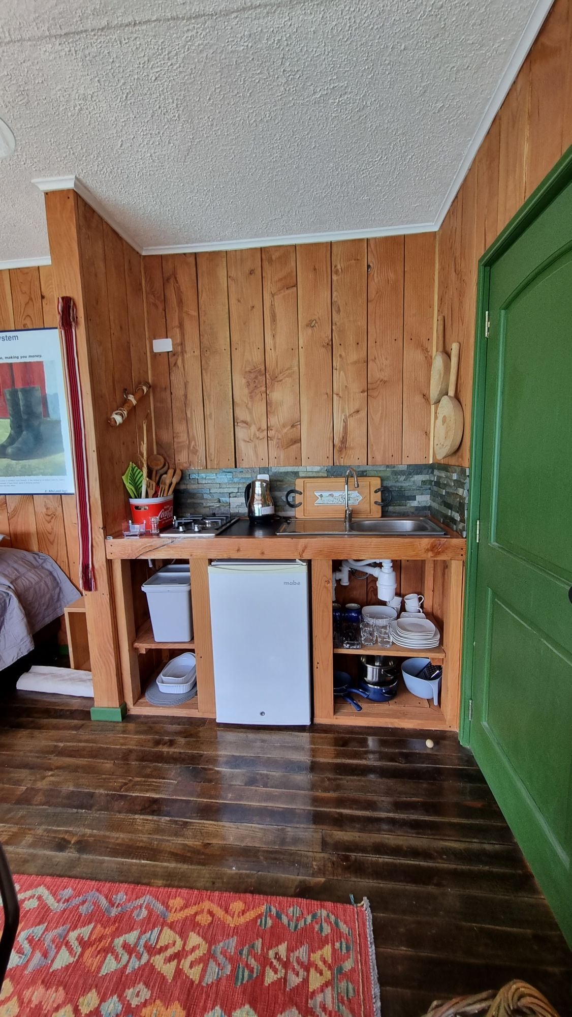 A small cabin for 2 people with all the amenities to have a wonderful experience on the shores of Lake General Carrera, direct access to the beach, fantastic for fishing lovers. Cabin is located 17 km from Puerto Rio Tranquilo, the starting point to visit Capillas de Mármol, Laguna San Rafael, and Glaciar Exploradores.