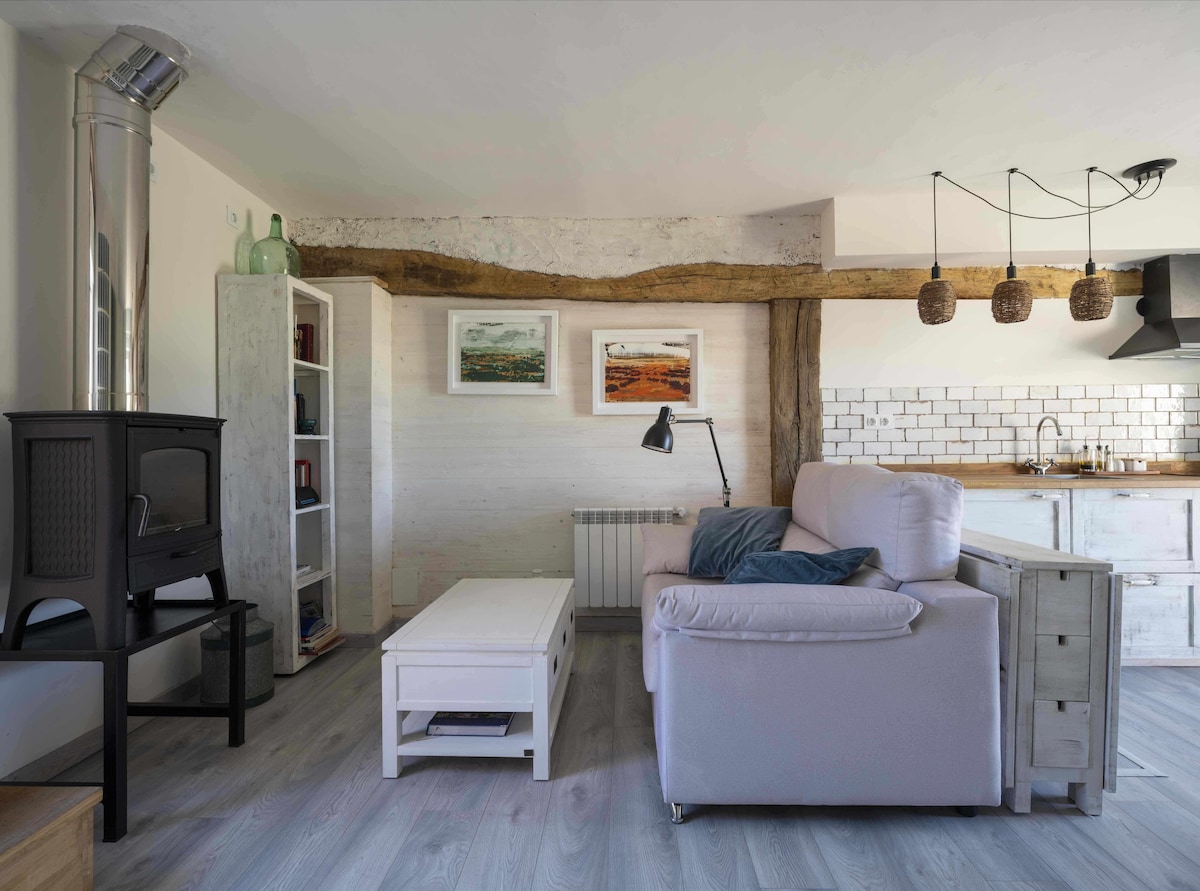 Restored townhouse. We have equipped it with the maximum comfort and necessary amenities. It has a large room with a Jacuzzi, a kitchen-living room with a fireplace, a bathroom, and stunning views of the Etxauri valley. A large balcony and access to a shared patio and garden. Ideal for disconnecting and enjoying nature: climbing, canoeing, hiking, cycling, etc. Located in Bidaurreta, a village of 180 inhabitants, just 20 kilometers from Pamplona.