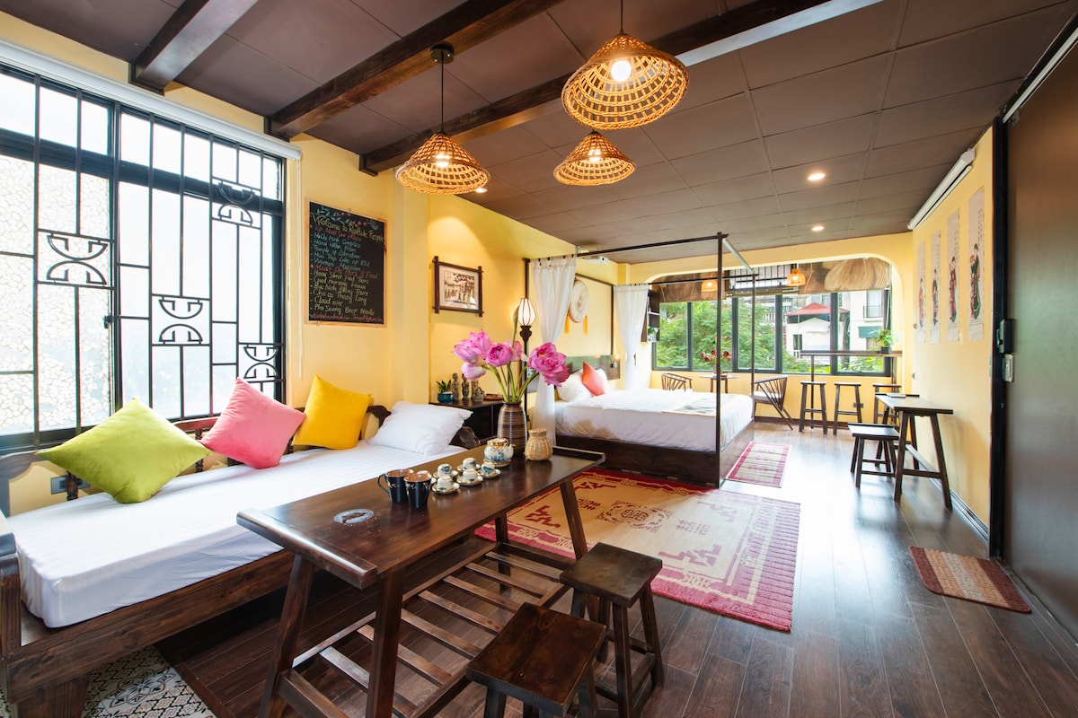 Discover Hanoi from this boutique condo in the Old Quarter—just a short walk to TRAIN STREET, HOAN KIEM LAKE, TEMPLE OF LITERATURE, and the THANG LONG IMPERIAL CITADEL. Thoughtfully designed for your comfort, it features a KING SIZE BED, PRIVATE KITCHEN, and a FULL HD PROJECTOR WITH 100 INCH SCREEN. Whether you're soaking in the WOODEN BATHTUB or taking in the city views, every detail invites relaxation. A perfect blend of central location and serene retreat.