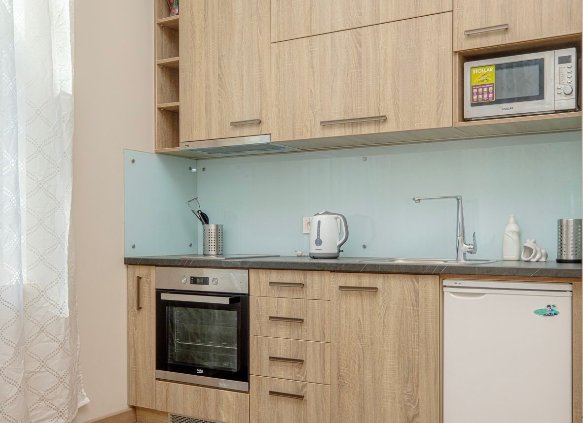 New studio apartment with your own entrance. Own bathroom own kitchen space and small outside porch. 10 min. walking distance till Dzintari beach. 5 min. walking distance till Jomas street (promenade street with many restaurants and coffee shops). View from studio is to spacious and well-kept garden. There is gate and fences around the property. Parking space is by the property on the street.
