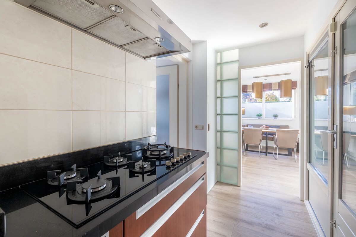"Quiet, Space and Luxury in Betuwe! Spacious detached villa with 250 m2 surface suitable for max. 10 people/3.5 bedrooms on a plot of almost 1000 m2. Free fast WiFi. Ideal for holidays in beautiful nature in the middle of the country. It is a cozy and bright villa with all comforts. The house has a large sunny garden with Jacuzzi, BBQ and spacious driveway with space for several cars. "Heart of Utrecht and Amsterdam is 25 minutes by car. Shopping center 5 minutes.